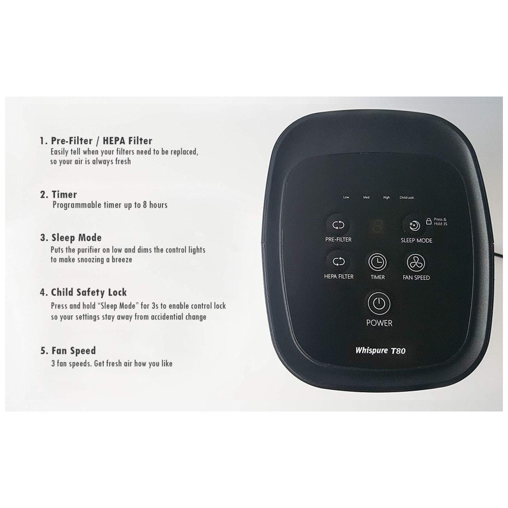 Esterilizador de Ar Whispure Filtro HEPA Vírus Bactérias 110v WHIRLPOOL WPT80B Preto