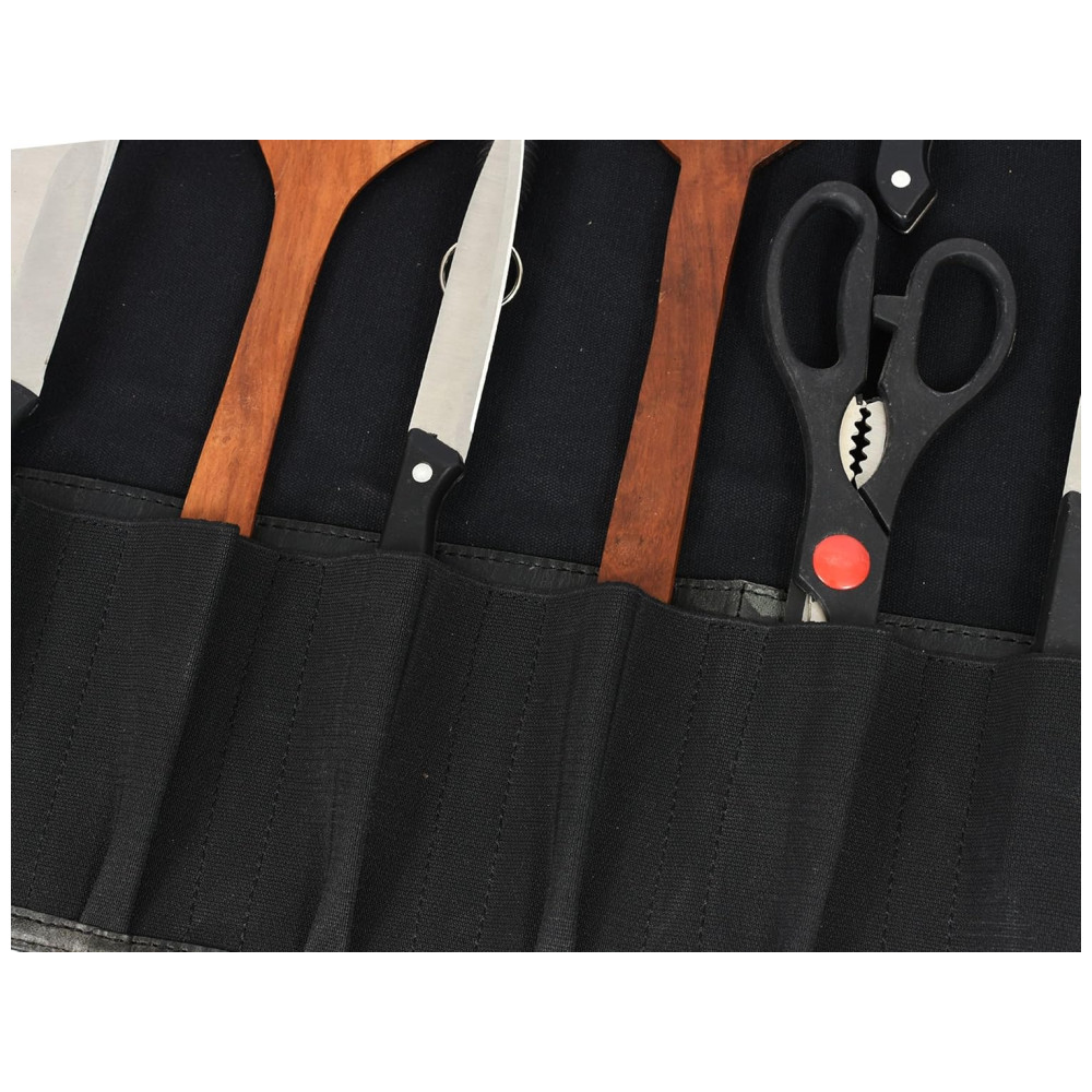 Pode ser como estojo de zenamento de facas zenando 10 facas de cozinha e outros acessórios. Também pode ser como suporte de utensílios. Pode conter facas de até 18 de comprimento