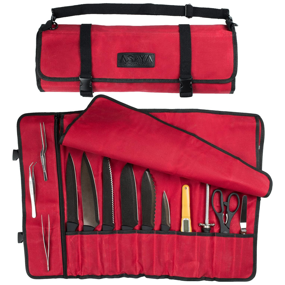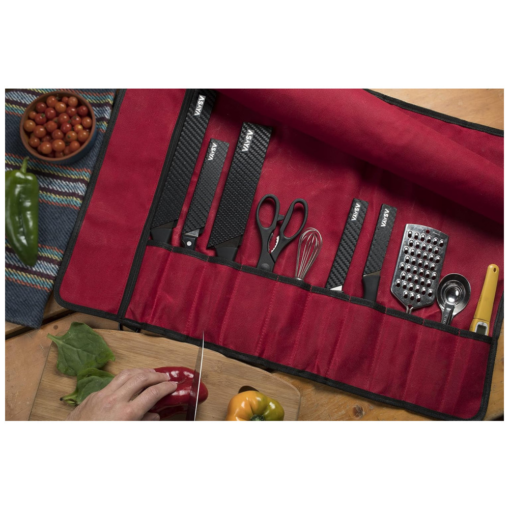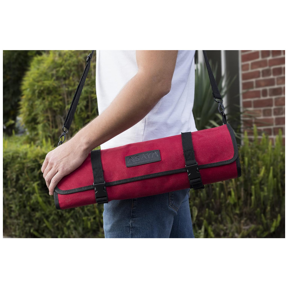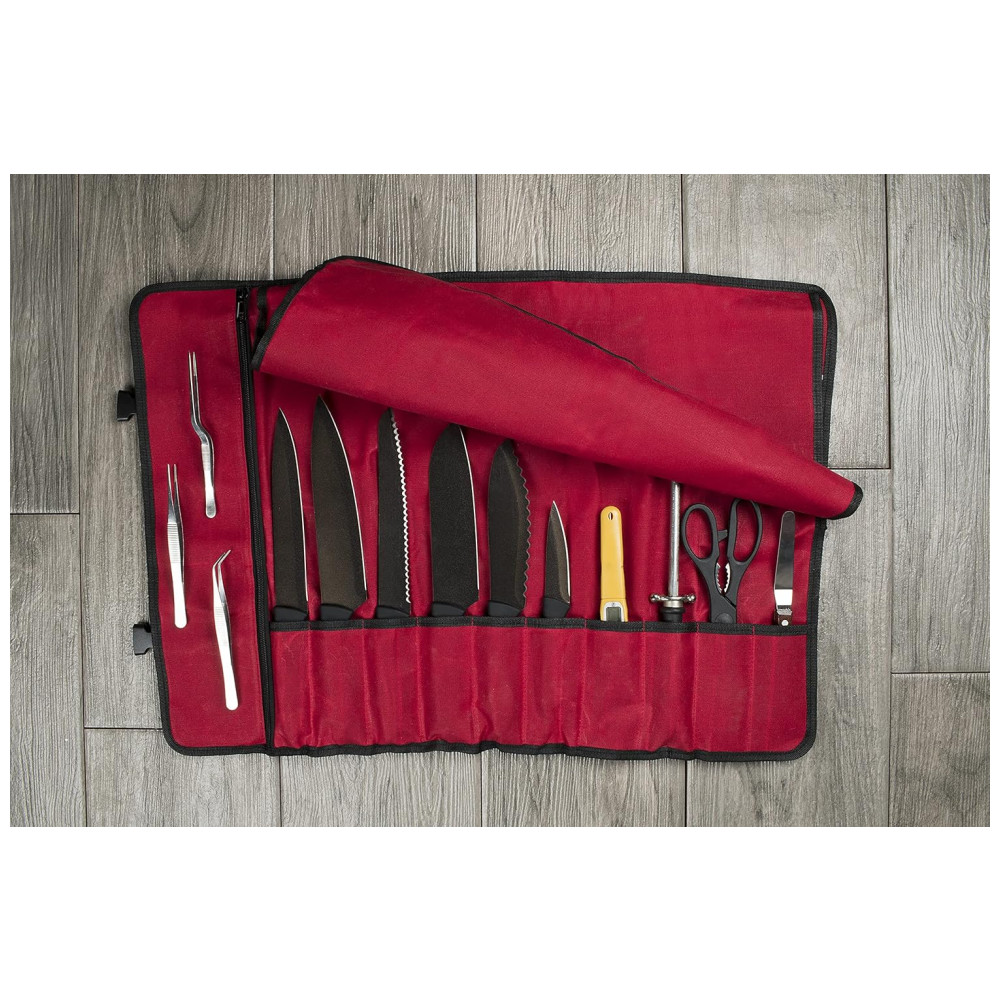 Estojo Bolsa Portátil para Facas com 10 Slots Facas não Incluídas ASAYA Vermelho