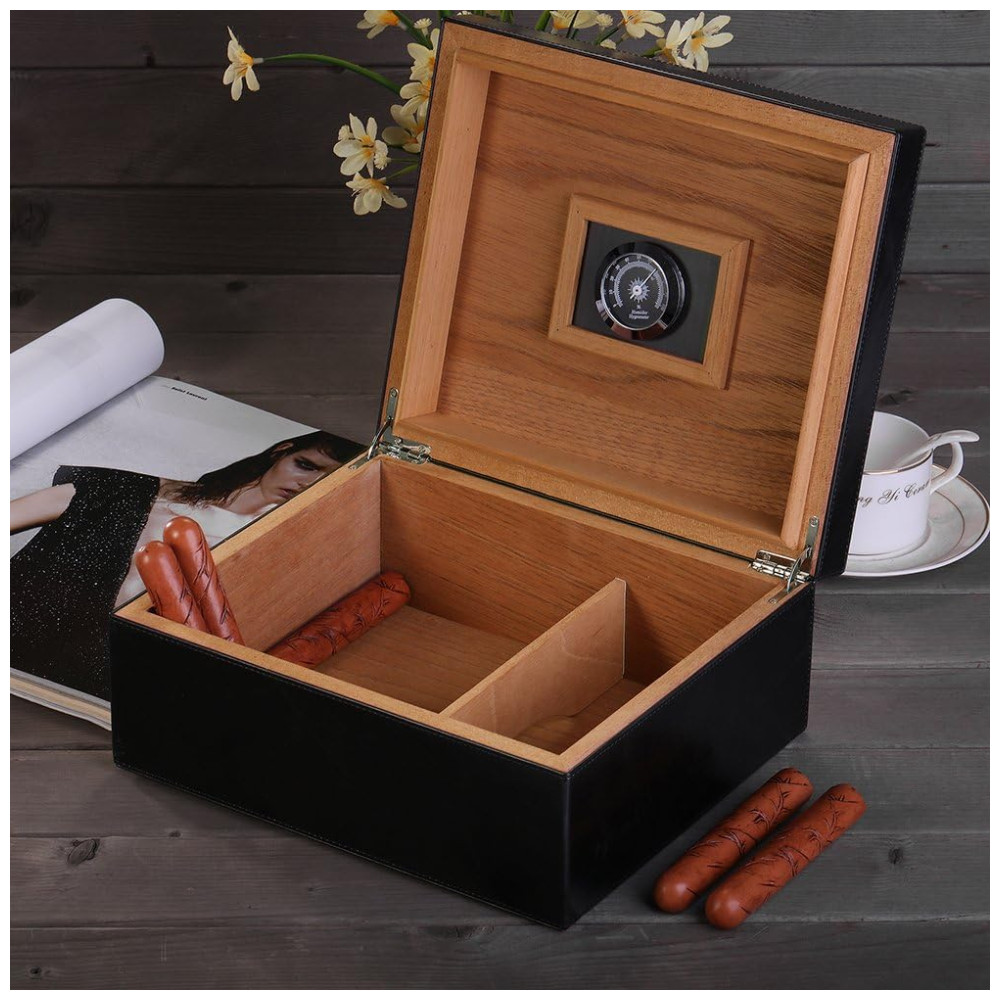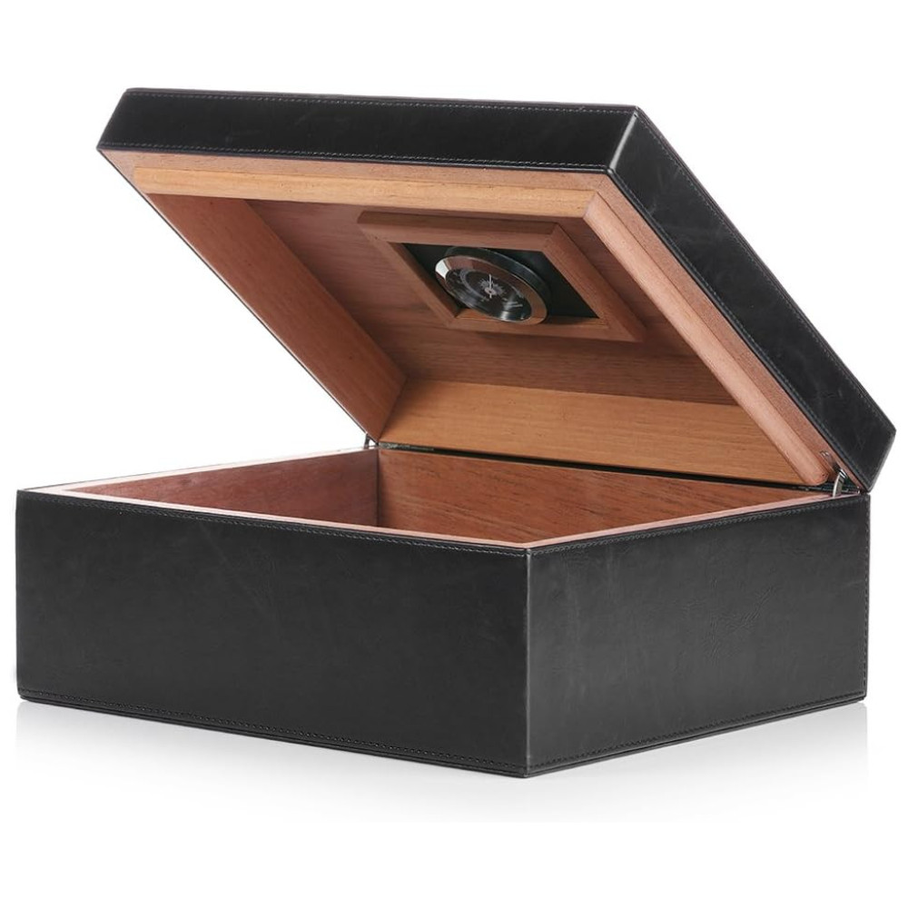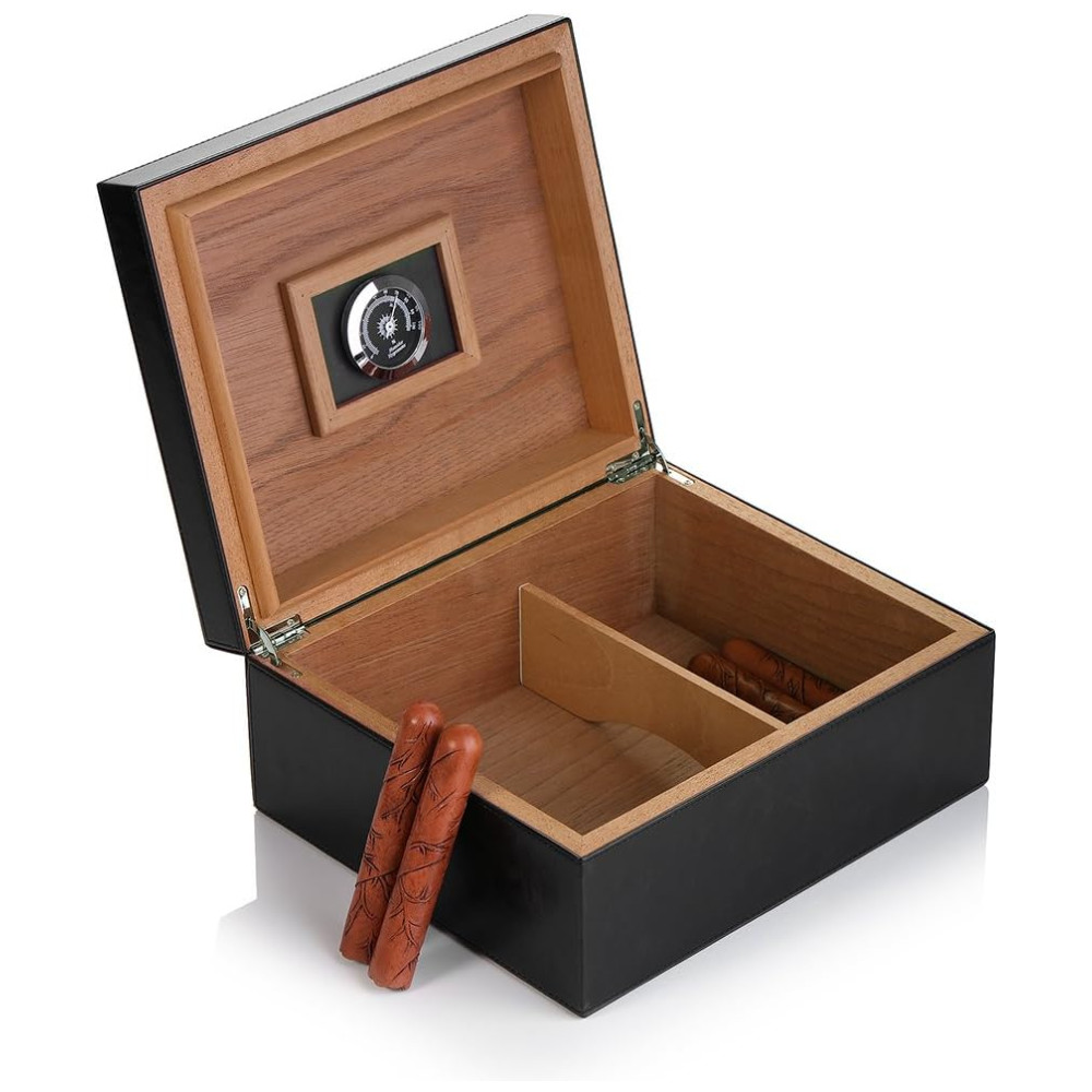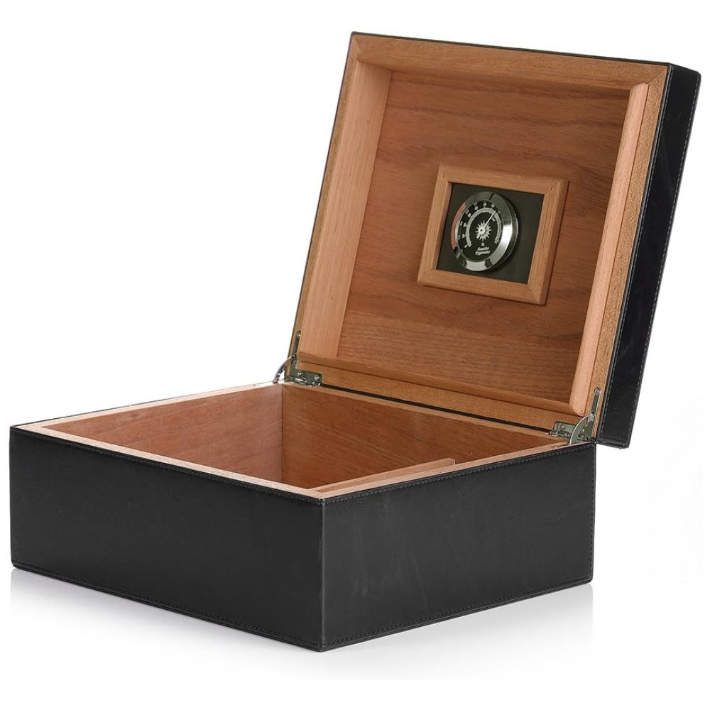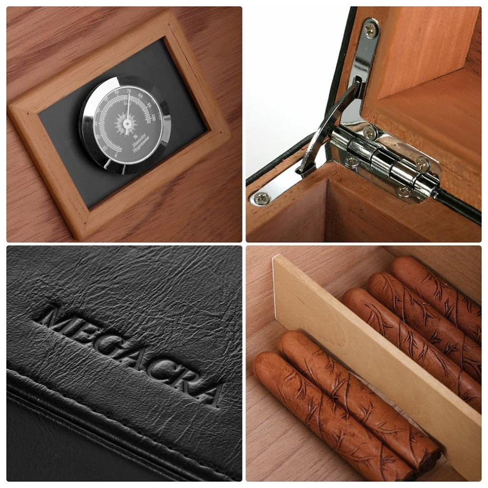 Estojo de Charutos em Couro Capacidade para 25-50 Charutos Design Elegante Caixa de Cedro Espanhol Maciço Controle de UmidadeMEGACRA.