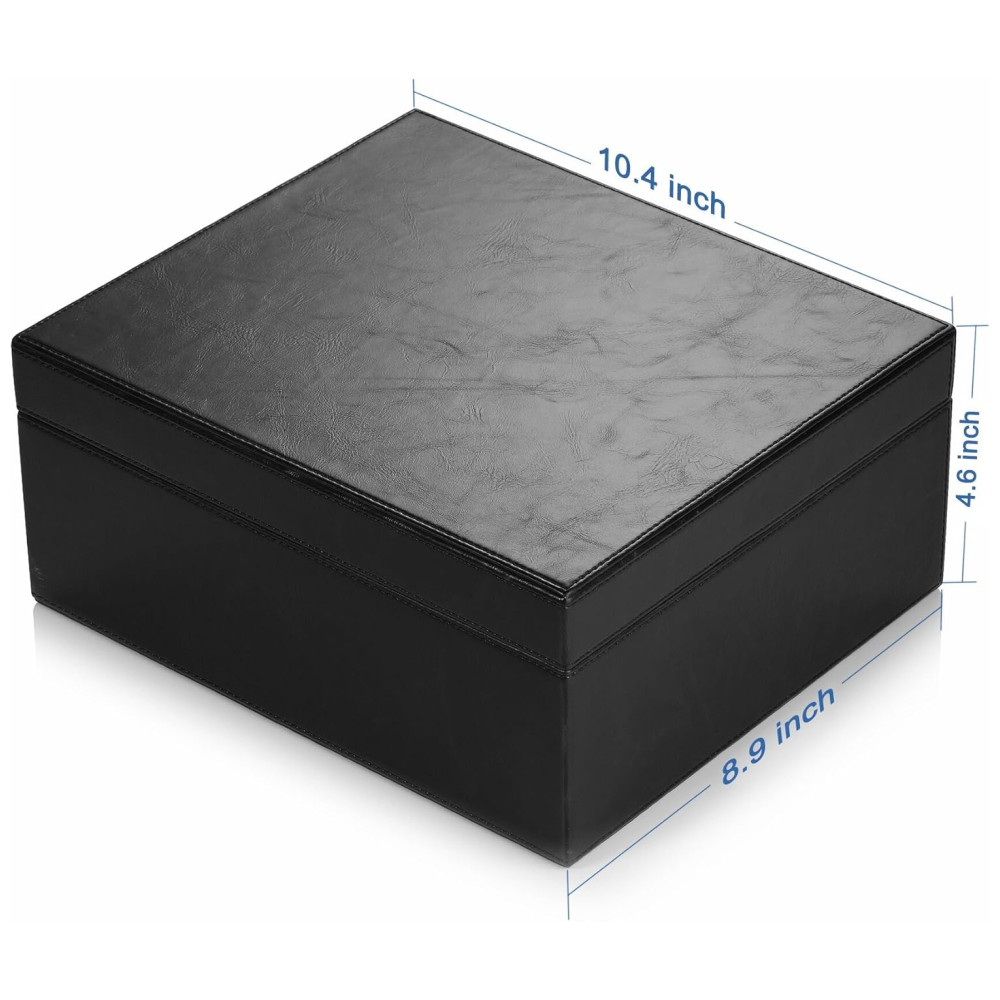 Revestido com autêntico cedro espanhol premium secado em estufa para excelente aroma e retenção de umidade. O design WELL SEAL do umidificador cria um selo incrivelmente apertado, mantendo seus charutos na umidade adequada e sempre frescos. Com dimensões de 23,5 x 20 x 8 cm internamente, esta caixa de charutos pode acomodar até 20-50 charutos, equipada com um umidificador. Inclui um umidificador, higrômetro magnético, divisória removível em cedro e manual.