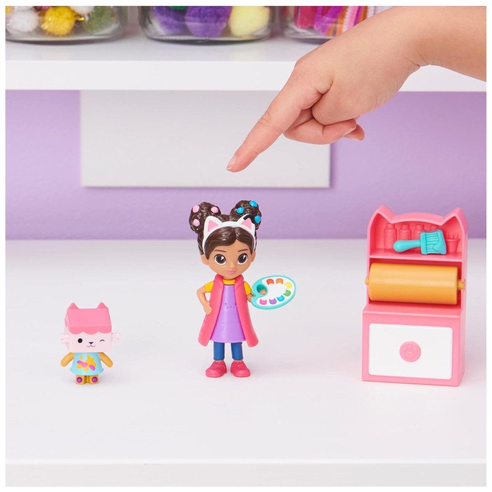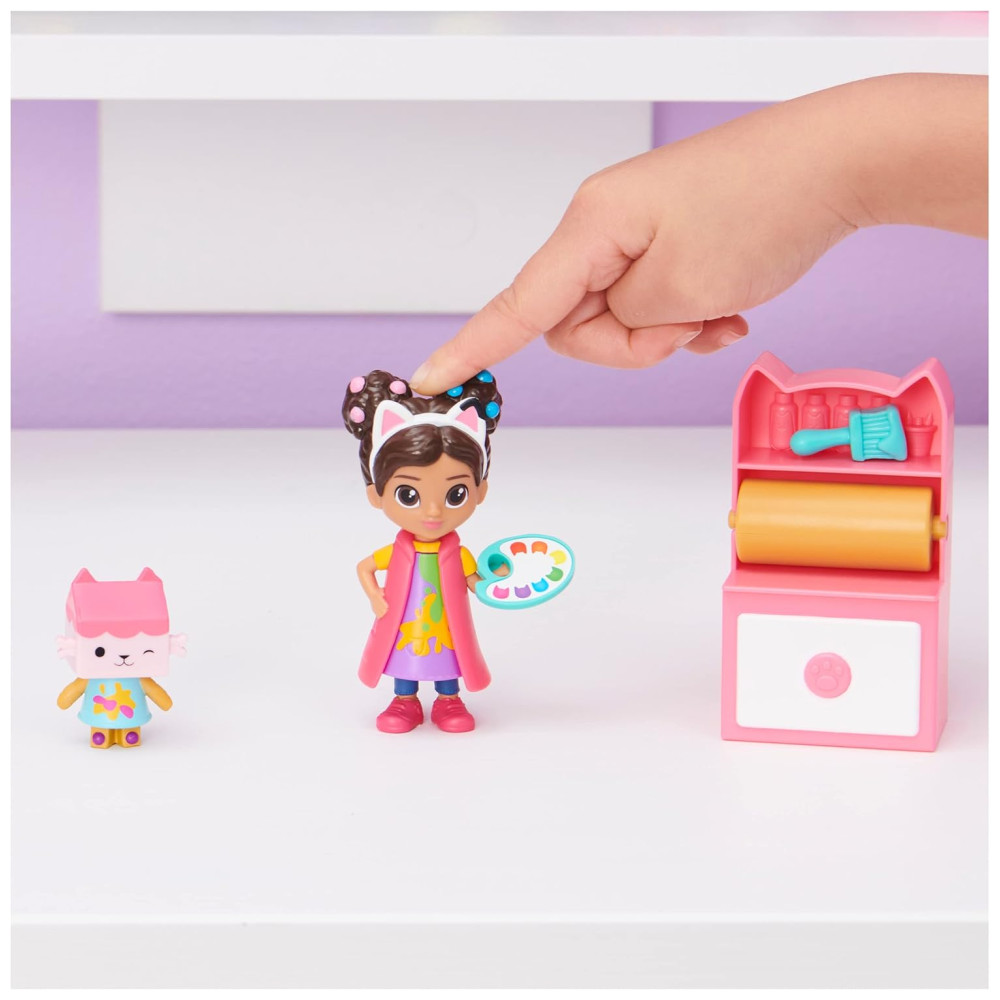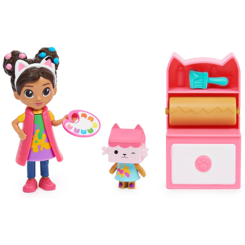 Inclui 1 figura Gabby Girl, 1 figura de gato de caixa de bebê, 1 peça de mobília, 1 entrega de casa de bonecas, 2 acessórios