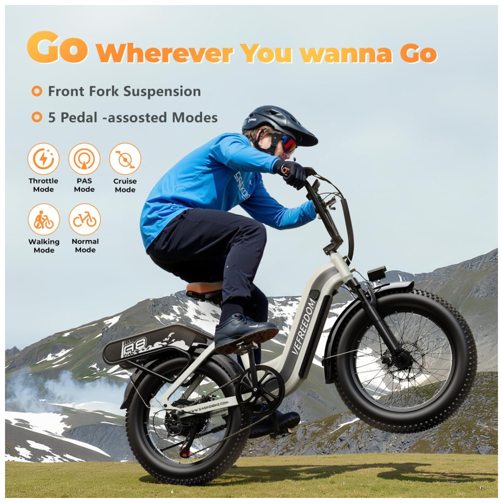 A Bicicleta Elétrica EUY para adultos combina um motor sem escovas de alta velocidade de 750W (pico de 1500W) com transmissão de 7 velocidades, tornando subidas íngremes e longos passeios uma brisa, atingindo até 48km/h e cobrindo até 112km. Esta ebike de longo alcance oferece eficiência perfeita e equilíbrio de potência para garantir que seu passeio seja agradável. A bateria de lítio removível à prova d’água de 48V 20 Ah proporciona uma autonomia de até 112km no modo de assistência ao pedal e 48km no modo elétrico, atendendo às necessidades diárias de deslocamento ou viagem de bicicleta elétrica. Equipada com Suspensão Dianteira, Freios a Disco Duplos, 2 amortecedores de mola garfo dianteiro e 2 pneus gordos antifuros 20×4.0, proporcionando excelente desempenho de absorção de choque. A bicicleta elétrica oferece 5 modos de condução: Modo totalmente elétrico, Modo de assistência ao pedal, Modo de bicicleta clássica e 5 níveis de assistência ao pedal (PAS) para sua escolha. A tela LCD colorida de alta definição mostra a velocidade em tempo real, a energia da bateria, os níveis de assistência ao pedal, a quilometragem e muito mais, facilitando o acompanhamento dos seus passeios, mesmo à noite. As ebikes urbanas para commuter foram parcialmente montadas. O vídeo de instalação está disponível na página do produto. Fornecemos 12 meses de assistência pós-venda para o motor, bateria, carregador e controlador. Entre em contato se tiver alguma dúvida. Mantenha a embalagem original por um tempo, caso surjam problemas para devolução.