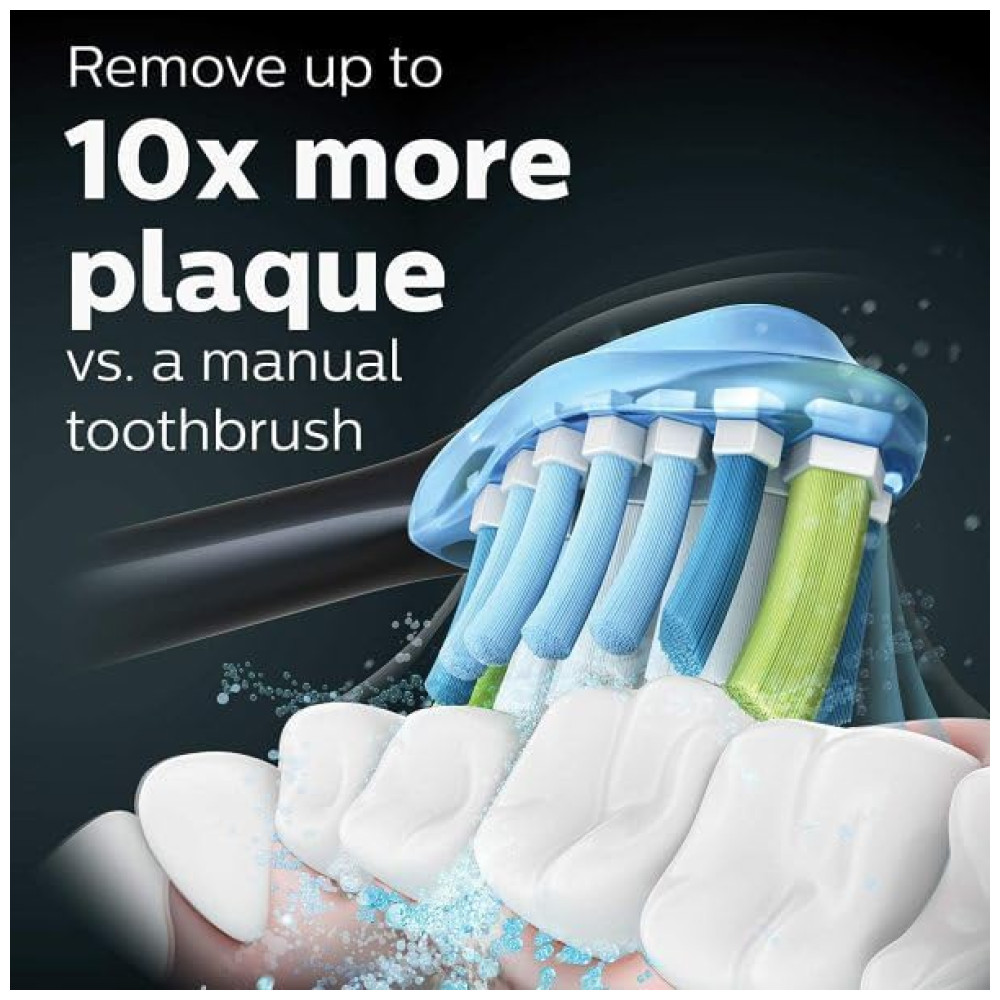 Fornece nível de especialista limpo removendo até 10 vezes mais placa vs uma escova de dentes manual.