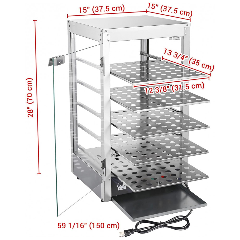 Expositor Aquecedor de Alimentos WeChef 5 Andares Prata 600W 110V para Pizza e Catering Comercial