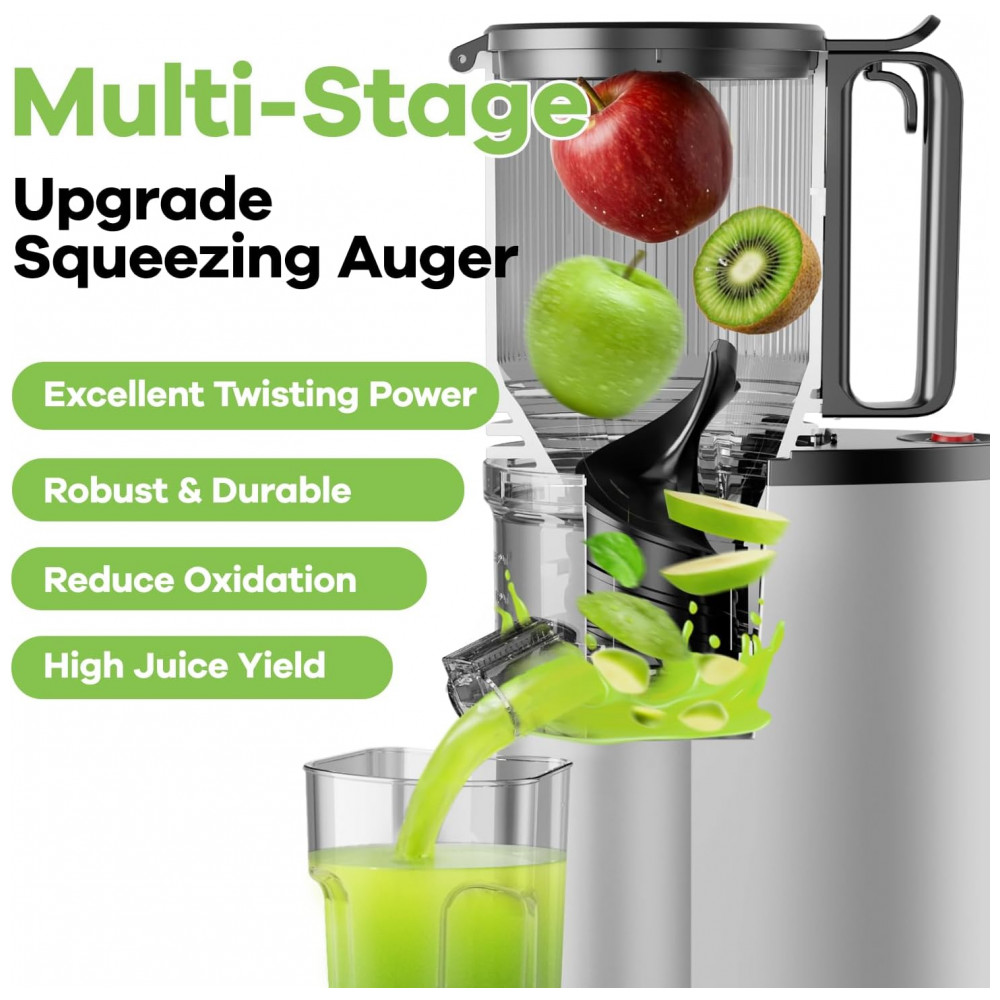 Extrator de Suco Cold Press Bocal Largo de 147cm Máquina de Sucos com 400W Alta Produção de Suco Extrator de Suco Lento para Frutas e Vegetais