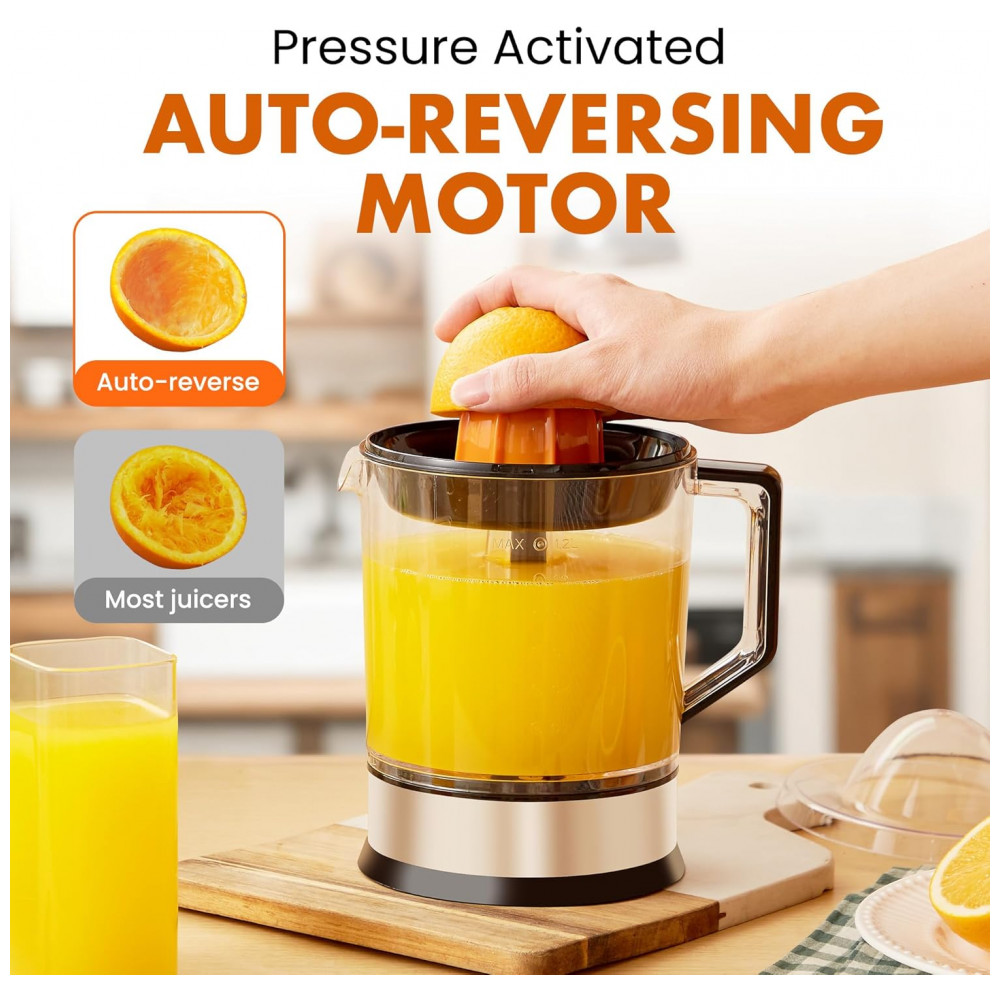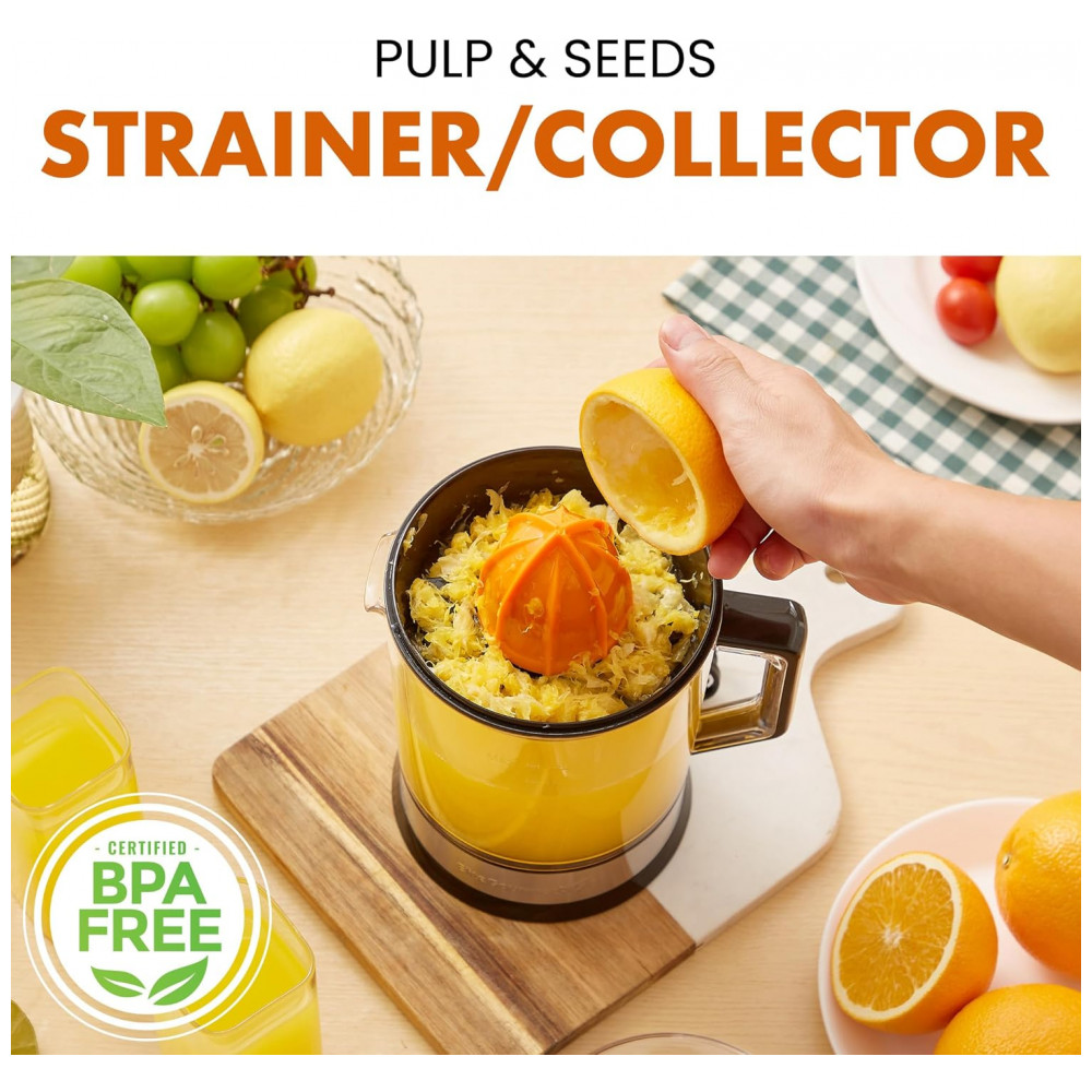 Comece o seu dia com um copo de suco de laranja fresquinho feito na hora! O Extrator de Suco de Citrus Elite Gourmet produz suco de citros perfeitamente espremido, com filtro de polpa e sementes, resultando em três xícaras de suco com a quantidade ideal de polpa, sem sementes. Fácil de desmontar e limpar, este extrator é eficiente e opera com apenas 40 watts. SAUDÁVEL E FÁCIL DE USAR: Extraia o suco diretamente das frutas cítricas, sem aditivos, açúcar extra ou conservantes, preservando as vitaminas, enzimas e nutrientes naturais. TAMANHO IDEAL: Com capacidade para 1,2 litros, é perfeito para 45 porções de suco fresco e saudável, com um bico de despejo conveniente e alça integrada ao recipiente de extração, que conta com um coletor de polpa/sementes. Todas as partes removíveis são seguras para lavar na lava-louças. COMPACTO E LEVE: Uma adição prática para qualquer apartamento, cozinha pequena, vida universitária ou viagens em trailers, ocupando pouco espaço no balcão. FÁCIL DE USAR: O extrator elétrico de movimento automático torna o processo de extração rápido e simples. Basta pressionar para extrair o suco e soltar para parar! SEGURO E AMBIENTALMENTE AMIGÁVEL: Feito com materiais ecológicos, respeitando as normas da FDA e sem plástico BPA. APROVADO PELA ETL FDA. Cor: Preto/Aço Inoxidável.