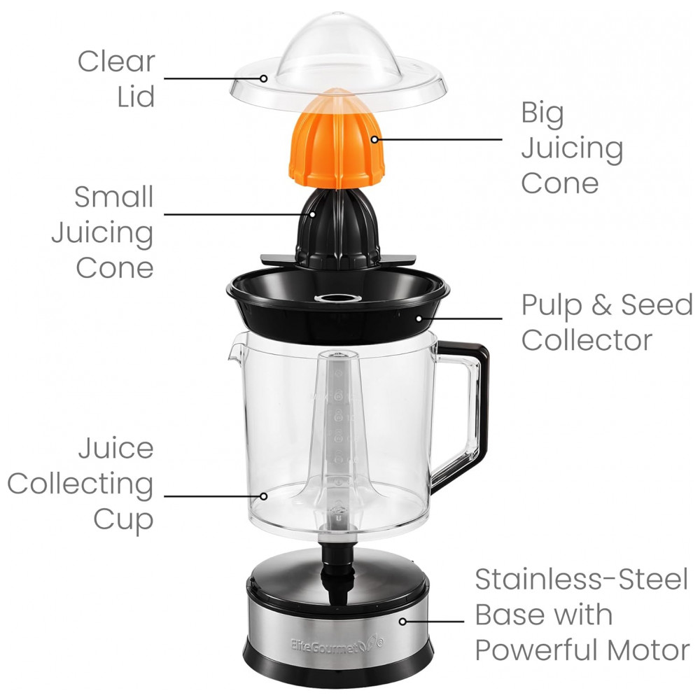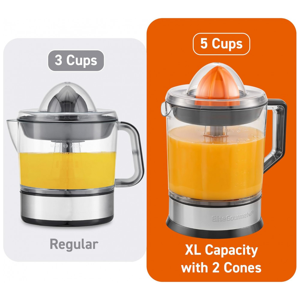 Extrator de Suco de Citrus Elite Gourmet ETS740 Livre de BPA com 2 Cones Compacto Alta Capacidade Controle de Polpa Laranjas Limões Limas