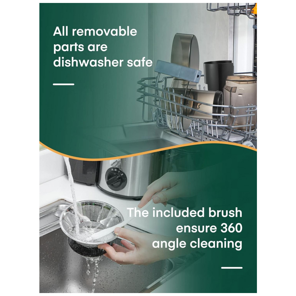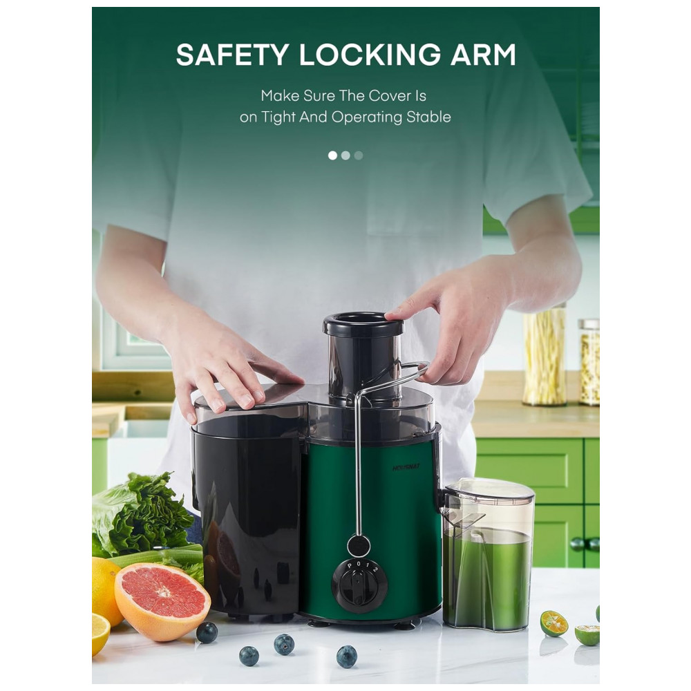 O Extrator de Suco Centrífugo HOUSNAT é feito com material de grau alimentício, aço inoxidável 304, lâmina afiada anticorrosão e filtro de precisão, garantindo a extração de até 35% do suco, 45% das vitaminas e minerais. Com 3 velocidades para sucos rápidos e bocal largo de 65MM para processar frutas e vegetais inteiros. Além disso, é fácil de limpar e livre de BPA, proporcionando sucos saudáveis e deliciosos.