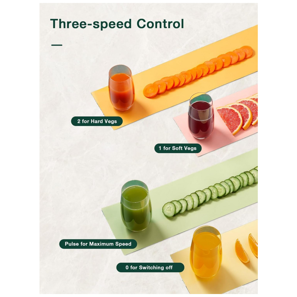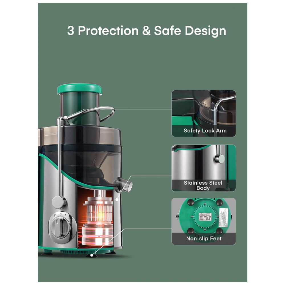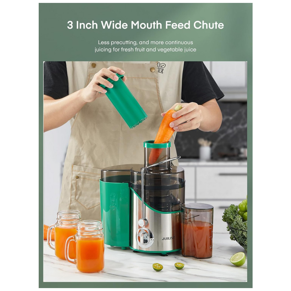 Extrator de Suco Juilist 762 cm para Frutas e Vegetais 3 Velocidades Motor de 400W Fácil de Limpar – Verde