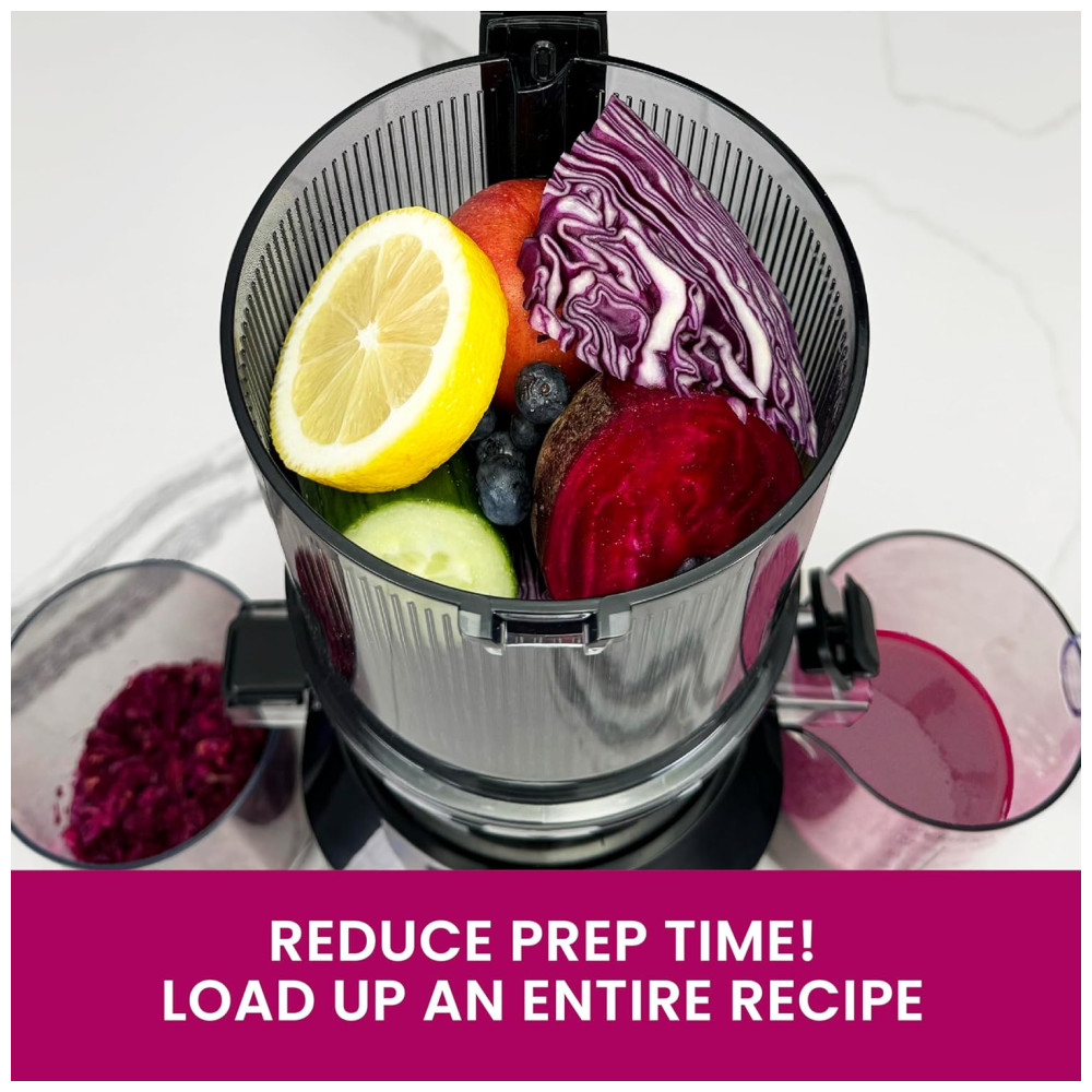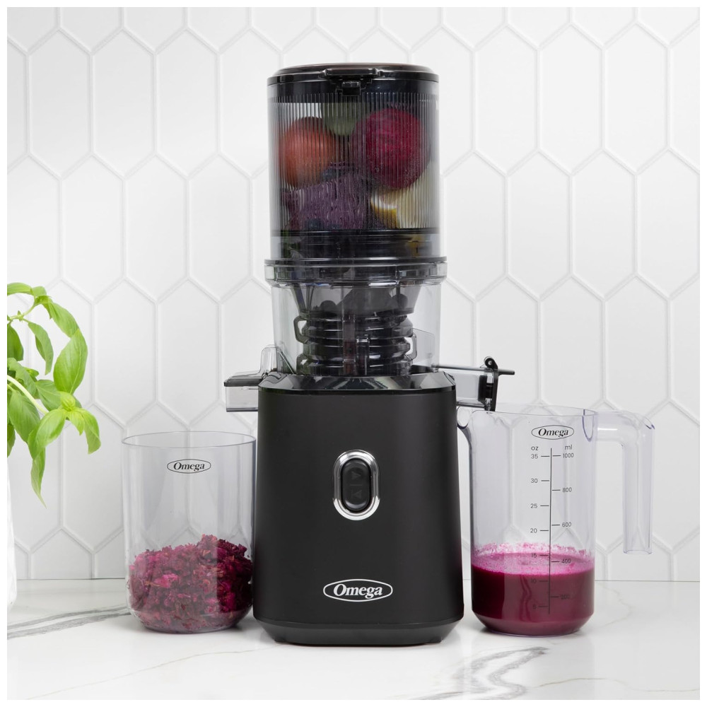 O extrator de suco Omega Cold Press utiliza tecnologia de prensagem lenta (slow masticating) para extração eficiente de sucos a partir de frutas e vegetais inteiros, preservando vitaminas e minimizando oxidação. O bocal amplo possibilita processamento em lotes com operação hands free, graças ao motor de 150W de baixo ruído e torque otimizado para extração máxima. Todas as peças livres de BPA podem ser desmontadas facilmente para limpeza manual ou em lavadora de louças. O design vertical e compacto facilita o uso diário em bancadas residenciais.