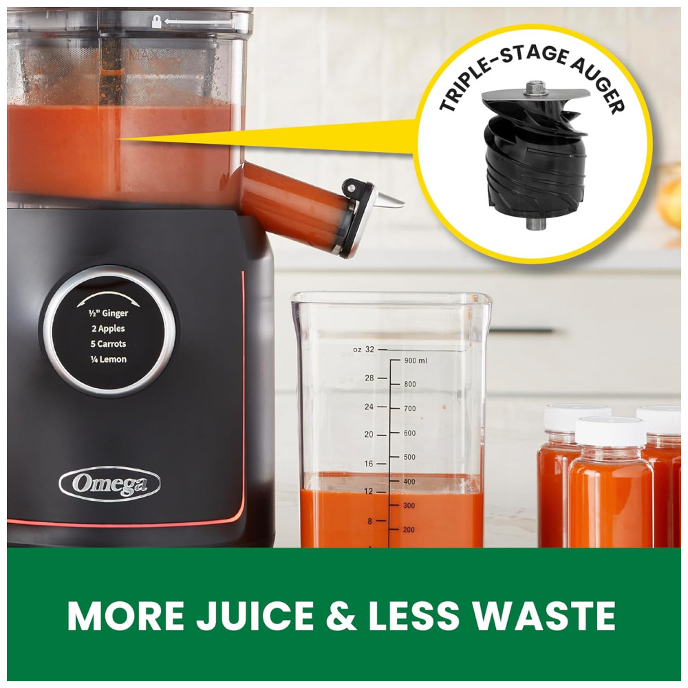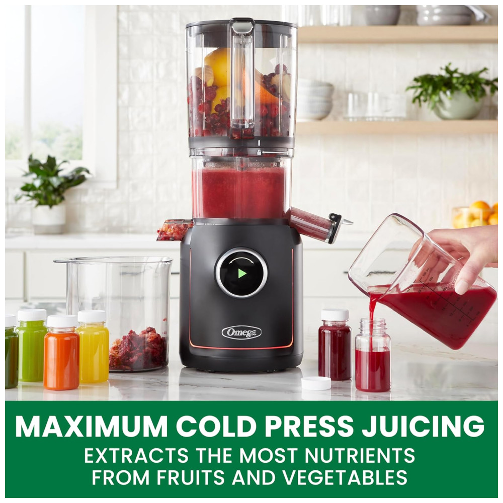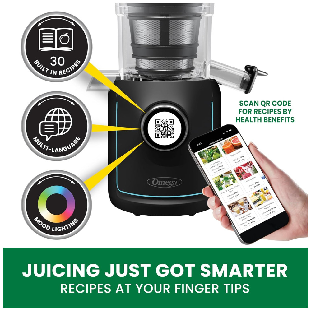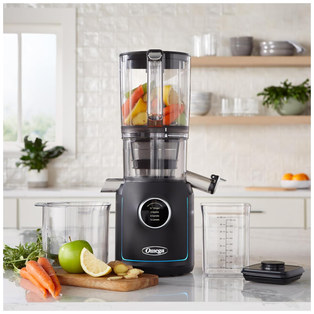 Extrator de Suco Omega Ultimate Performance Juicer Tecnologia Intellidial Motor Silencioso 200W 110V Funil 19L Acabamento Preto