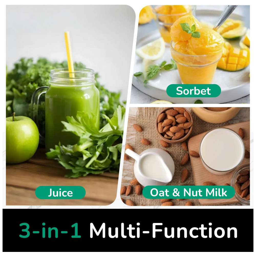 Característica Especial: 3 em 1 para Sucos, Sorvetes e Leites Vegetais, Auto-Reverso, Fácil Limpeza, Motor Potente, Processamento de Frutas Inteiras e Mais,