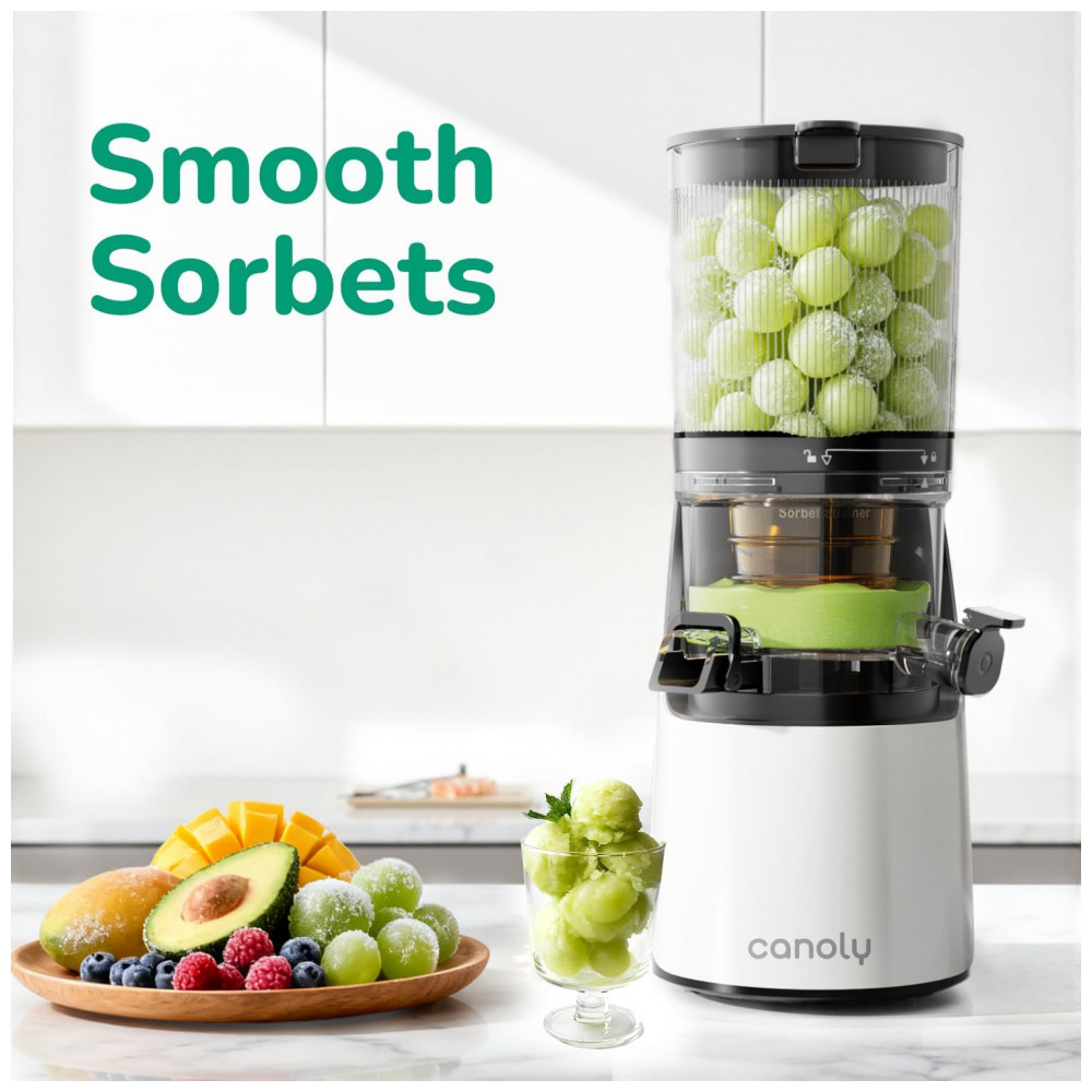 Extrator de Sucos a Frio Canoly C16 Boca Extra Larga 3 em 1 para Sucos Sorvetes e Leites Vegetais Motor Potente sem Escovas de Carvão