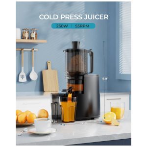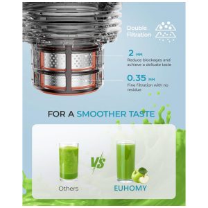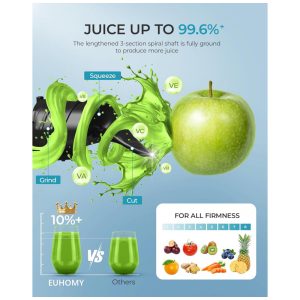 Extrator de Sucos a Frio EUHOMY 145 cm de Boca de Alimentação Extra Grande Extrator de Sucos Lento 250W Alto Rendimento de Suco para Frutas