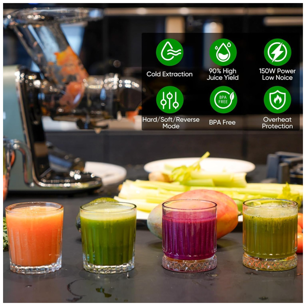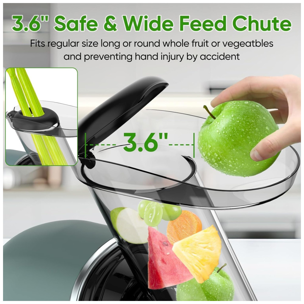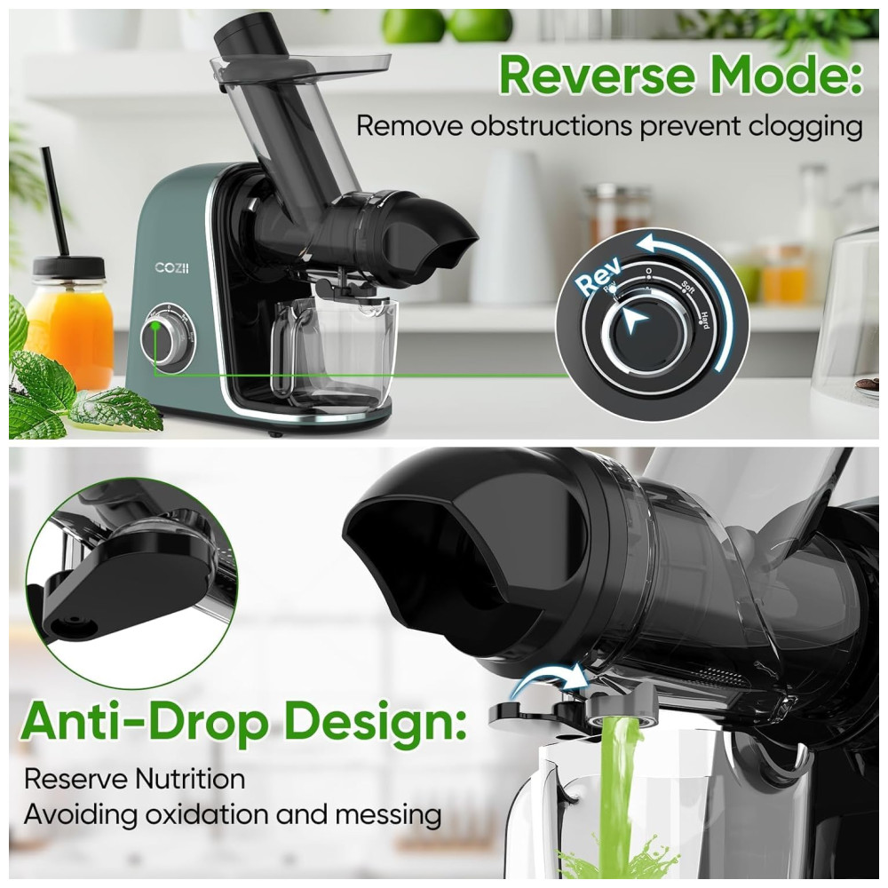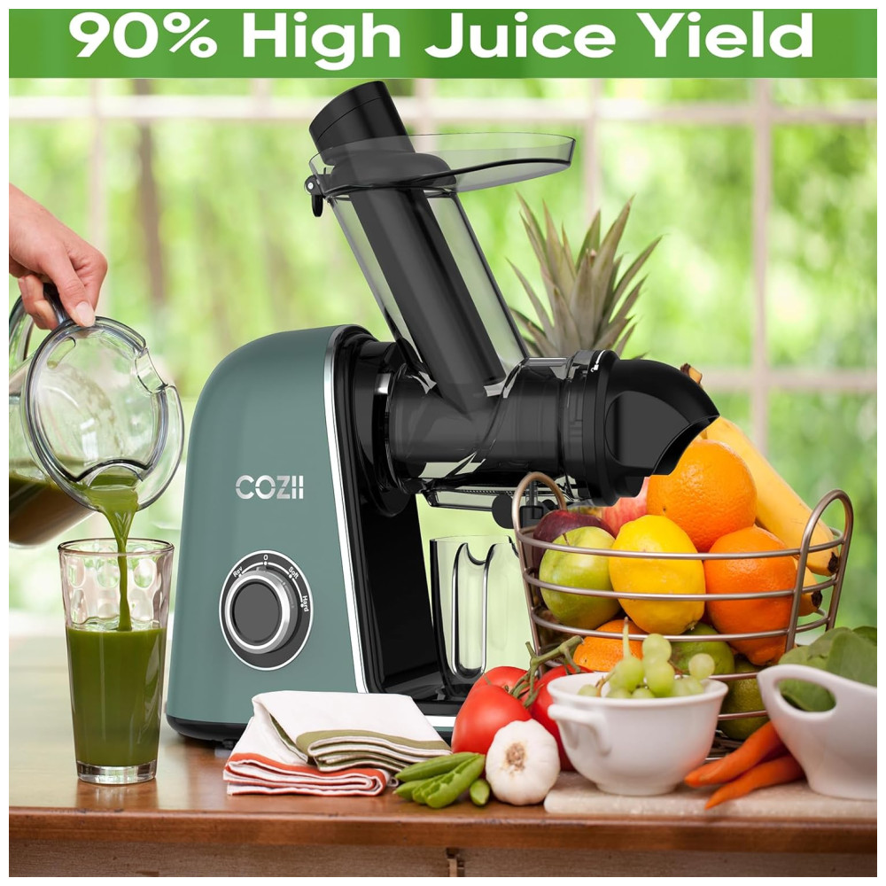 Extrator de Suco COZII Masticador Lento Motor Silencioso Modo Suave/Duro Abertura de 914 cm Fácil de Limpar Peças Laváveis em Lava-louças