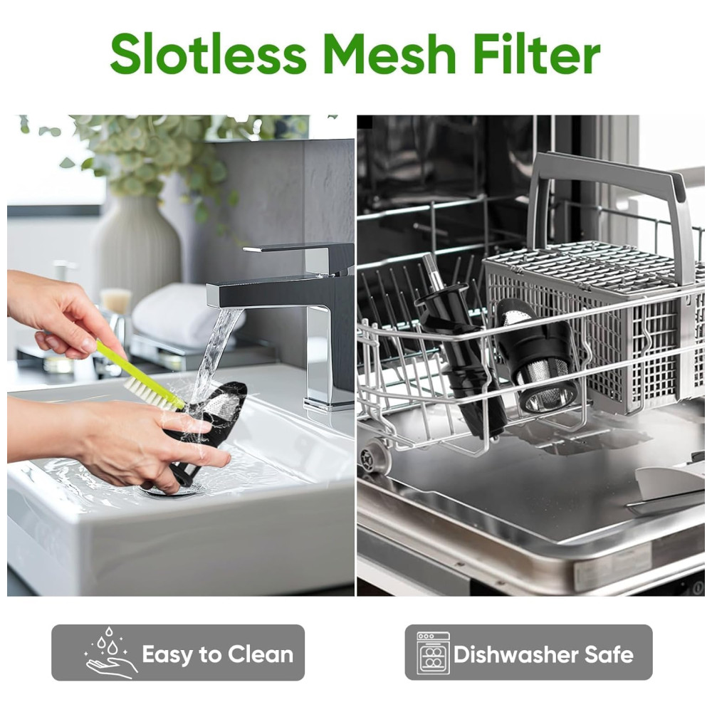 Conta com corpo desmontável e peças laváveis em lava-louças, facilitando a limpeza e manutenção do equipamento. A função reversa ajuda a desfazer entupimentos e agiliza a limpeza rápida. A estrutura usa materiais livres de BPA, e o filtro em aço inoxidável oferece alta durabilidade e resistência ao uso diário.