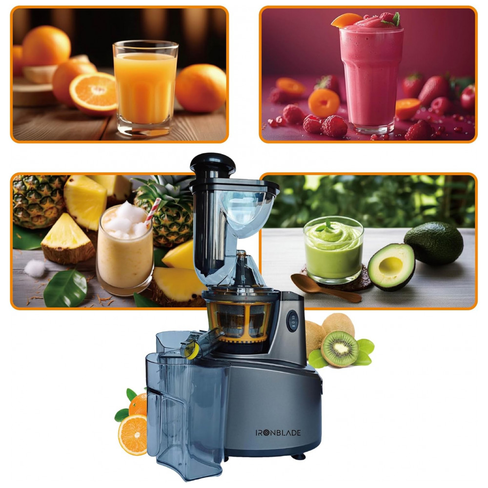 Extrator de Suco EMB Ironblade IBLJU20 Cold Press Motor Silencioso Boca Larga 75 mm 3 Velocidades Fácil de Limpar Voltagem 120V