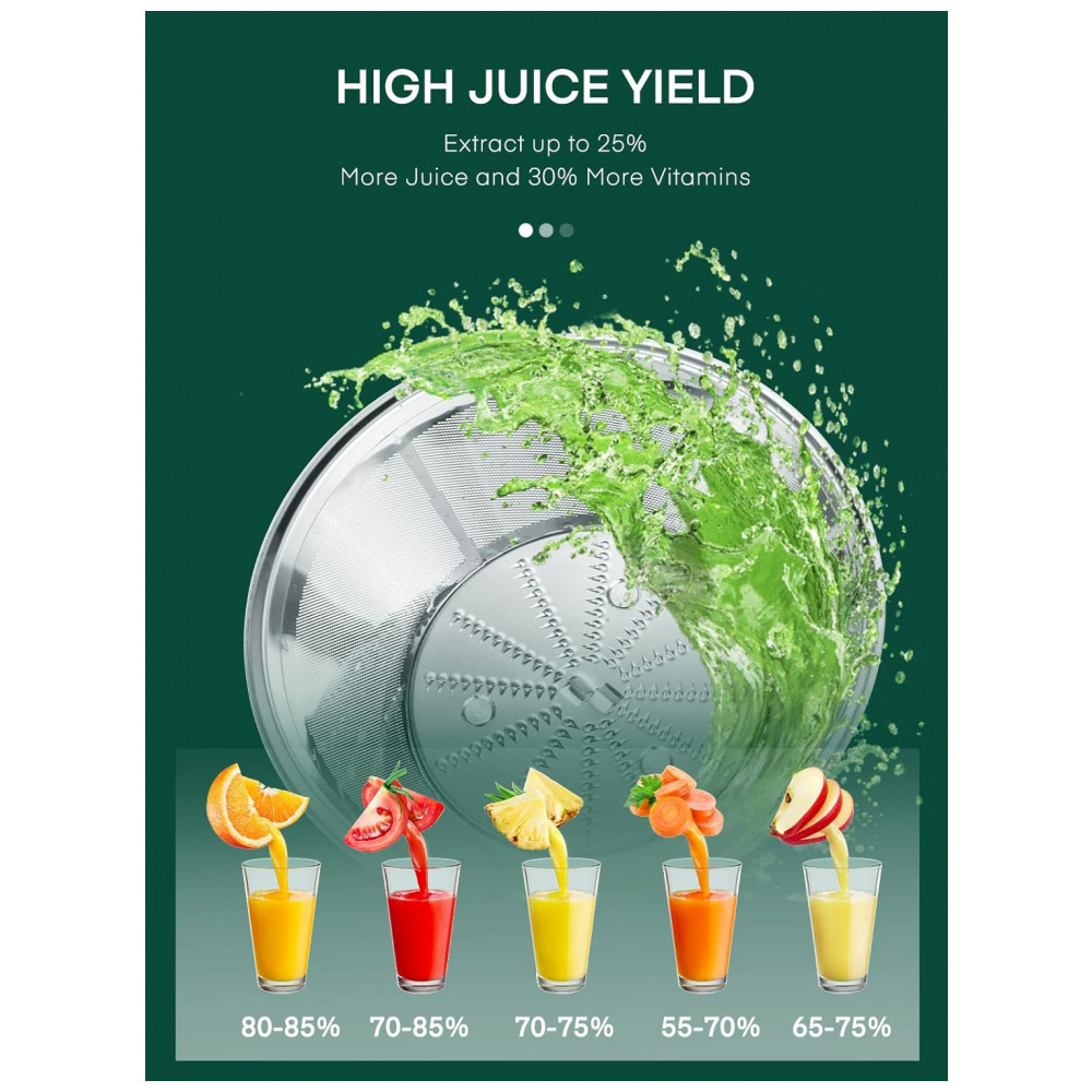 A centrífuga HOUSNAT de 400W é ideal para extrair suco de frutas e vegetais, com motor potente e três velocidades ajustáveis para diferentes tipos de ingredientes, desde os mais macios até os mais duros. O bocal largo de 65 mm permite o processamento de frutas inteiras, reduzindo o tempo de preparo. Equipado com lâminas afiadas de aço inoxidável e filtro de precisão, esse aparelho extrai até 35% mais suco e 45% mais vitaminas e minerais em comparação a modelos semelhantes.
