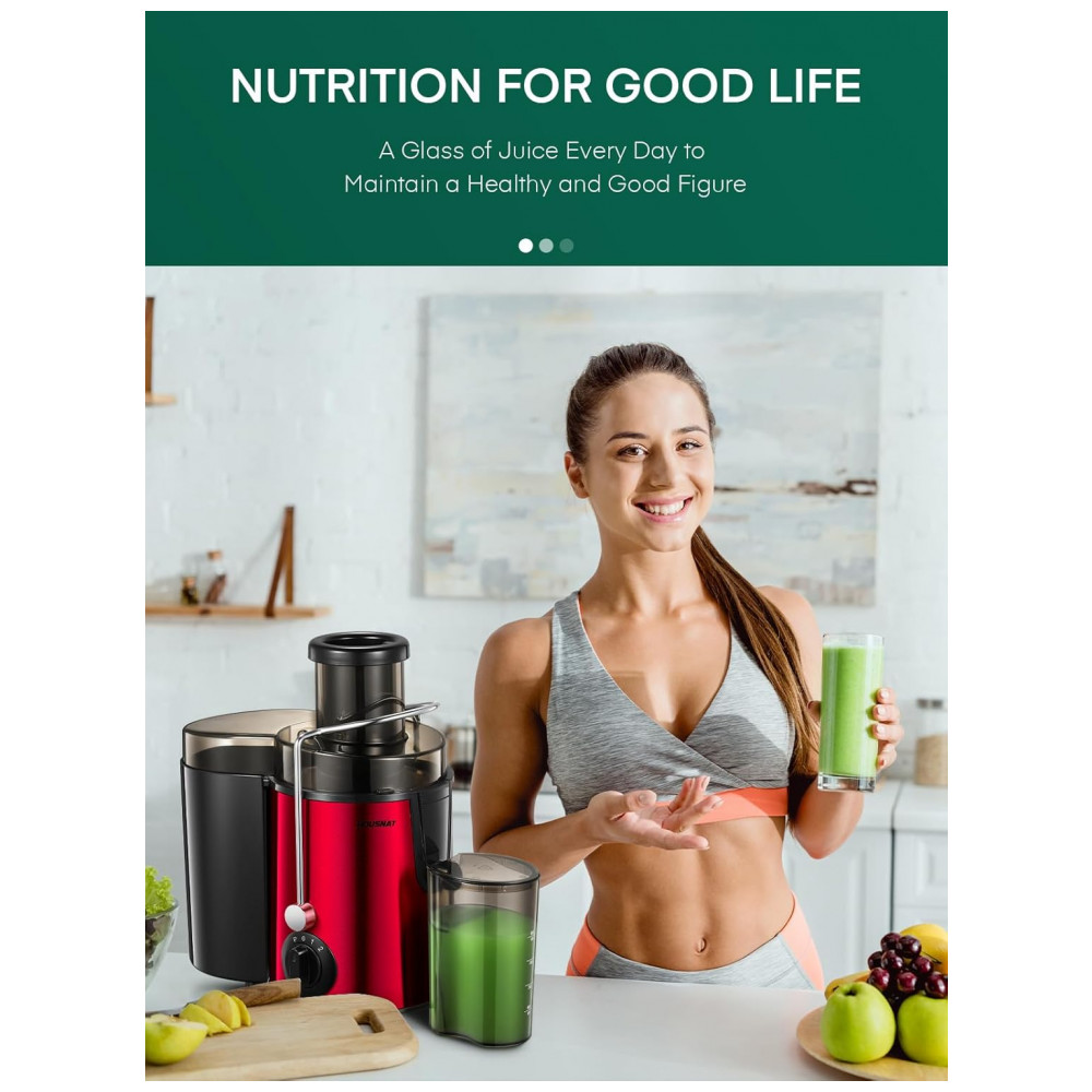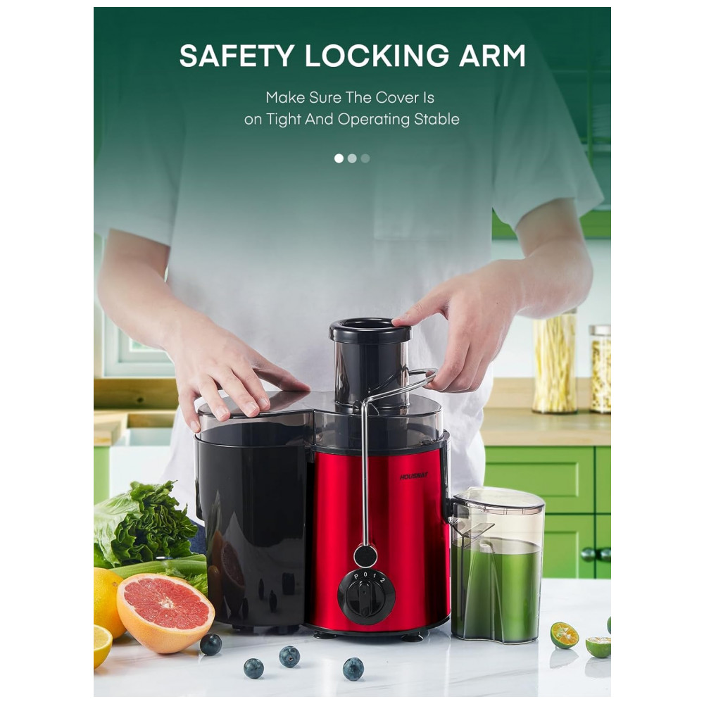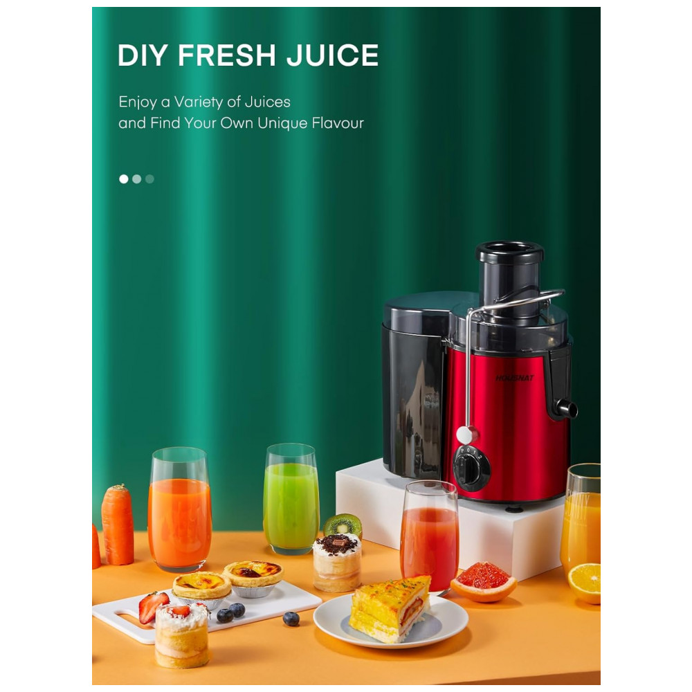 Centrífuga de frutas e vegetais HOUSNAT 400W 3 Velocidades Boca Larga 65mm Lâminas e Corpo em Aço Inox Fácil de Limpar Voltagem 120V – Vermelha
