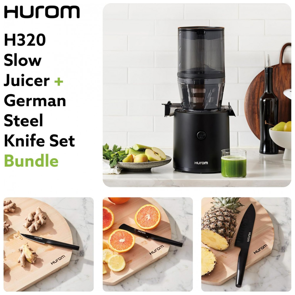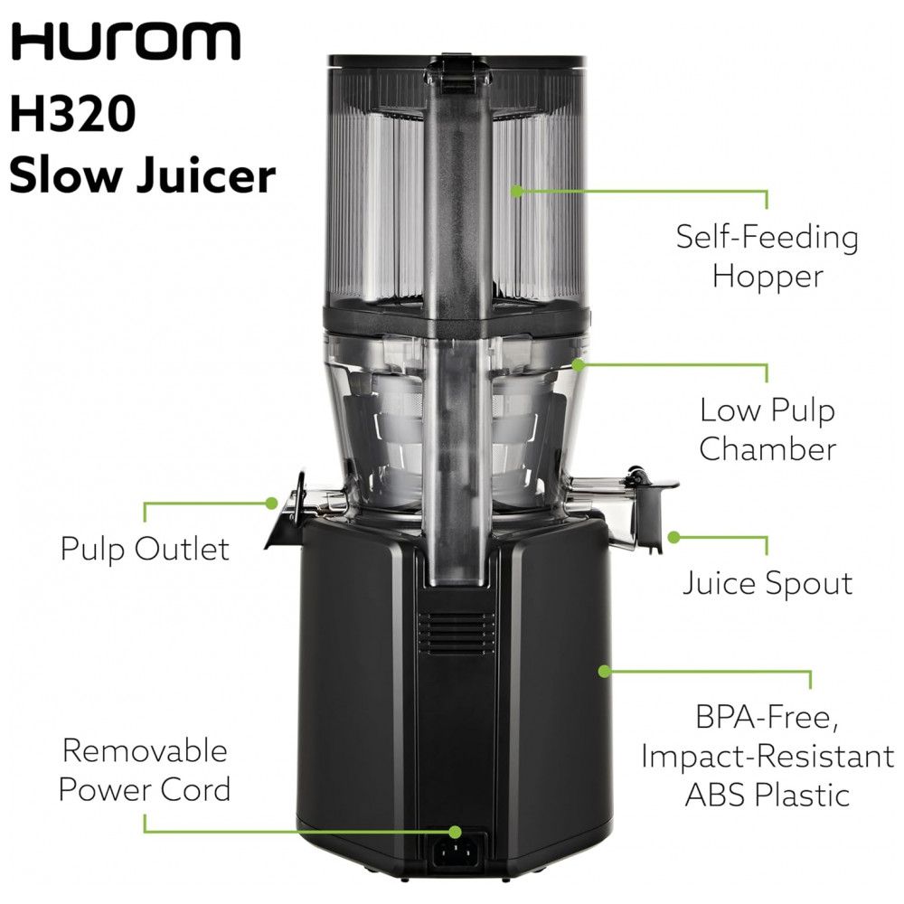 Extrator de Sucos Hurom Black H320 com Conjunto de Facas de Aço Alemão Máquina de Suco de Pressão a Frio Autocomedora Lâminas Revestidas