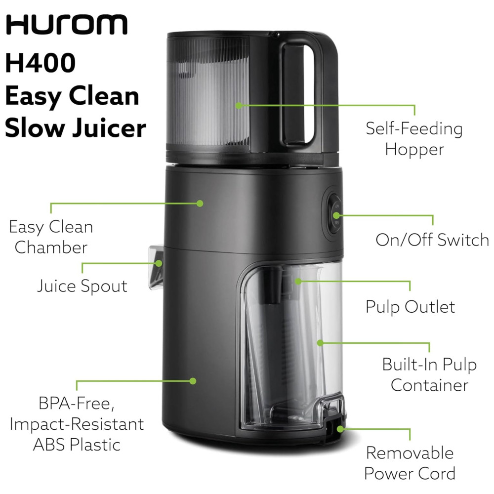 Extrator de Sucos Hurom H400 Easy Clean Preto Fosco – Alta Performance Livre de BPA Limpeza sem Esforço