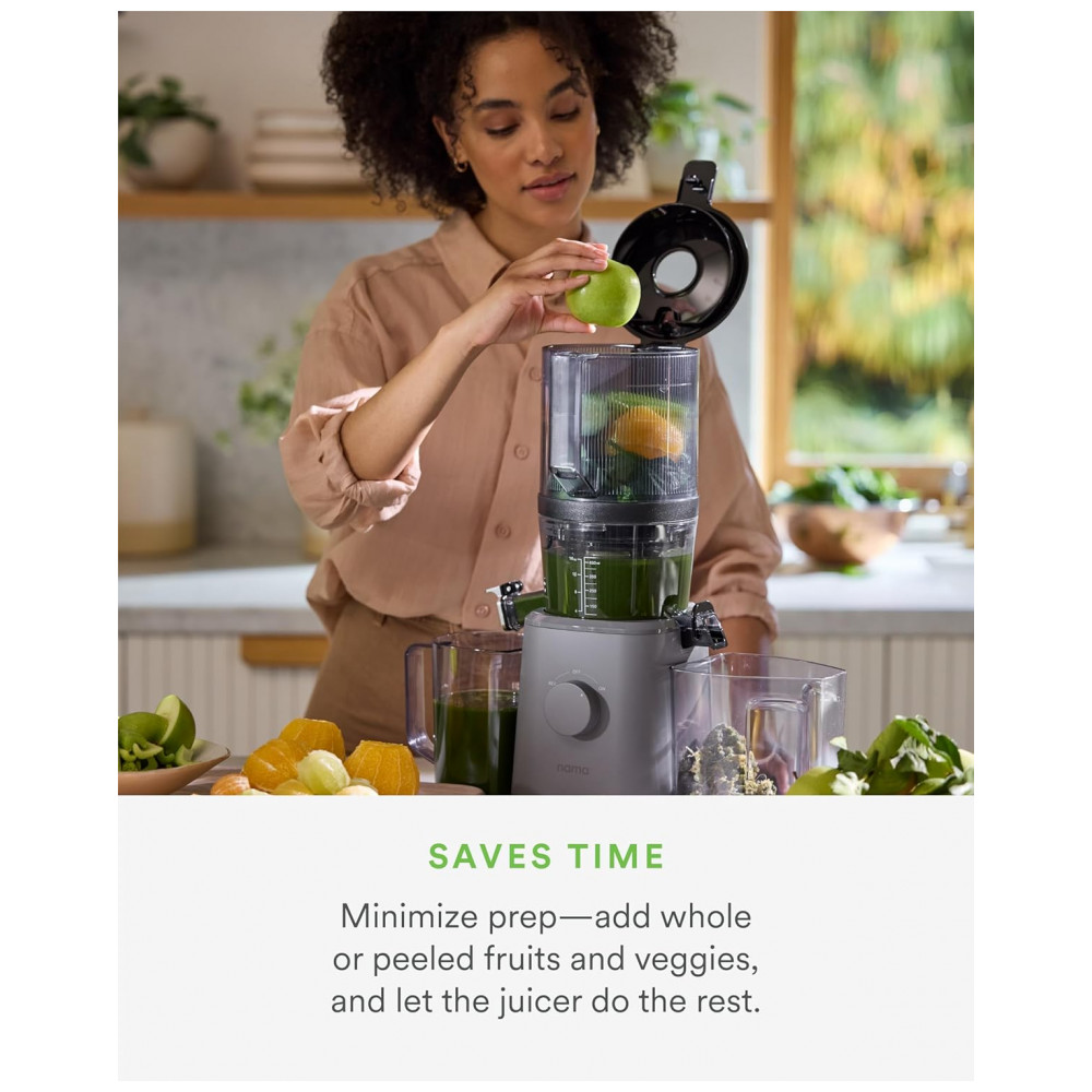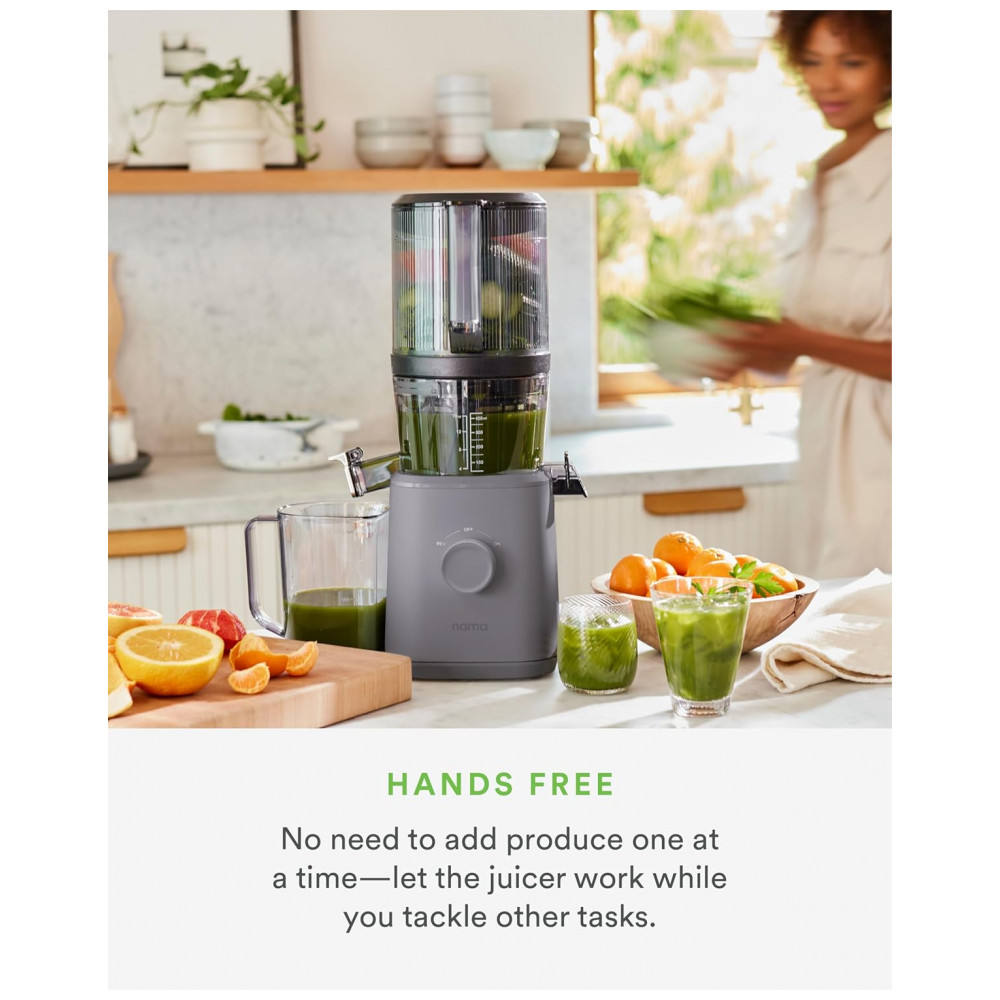 Extrator de Sucos Nama J2 Cold Press Automático com Alimentação Automática para Operação sem as Mãos e Boca Larga para Carregar Receitas Inteiras