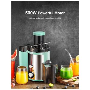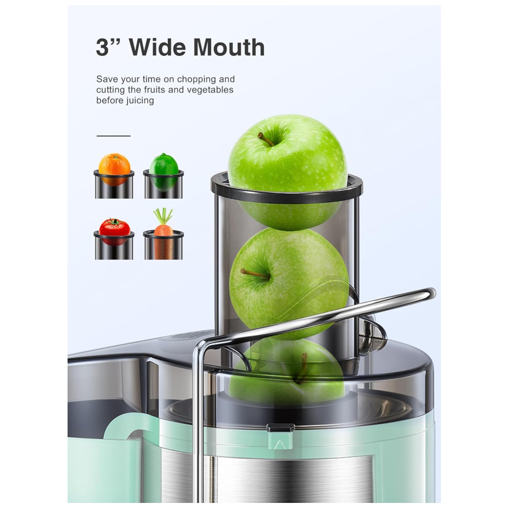 Extrator de Sucos QCen 800W Centrífugo com Boca Larga de 3 Alimentações para Frutas e Vegetais Fácil de Limpar Aço Inoxidável Livre de BPA Aqua