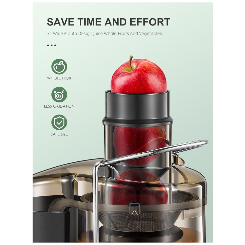 Extrator de Sucos QCen Centrífuga de 500W com 3 Bocas Largas para Frutas e Vegetais Fácil de Limpar Aço Inoxidável Livre de BPA