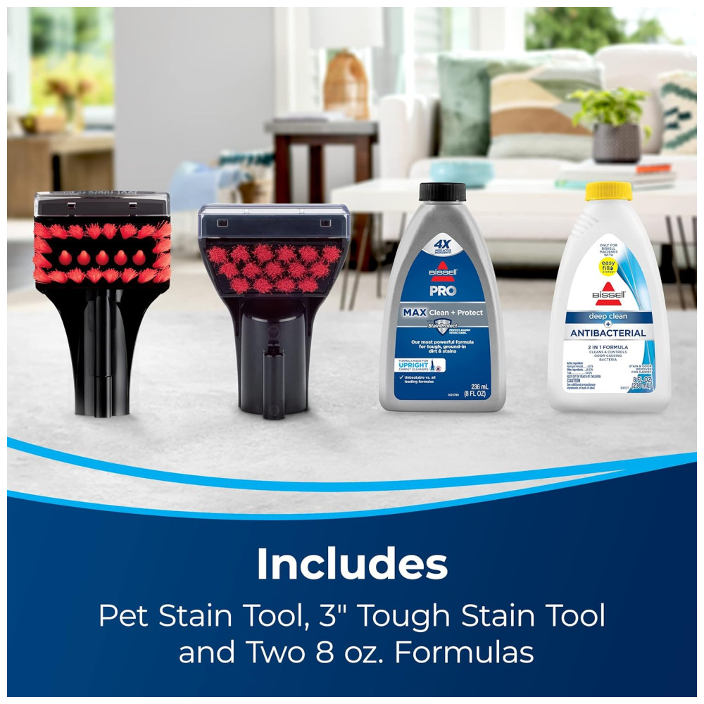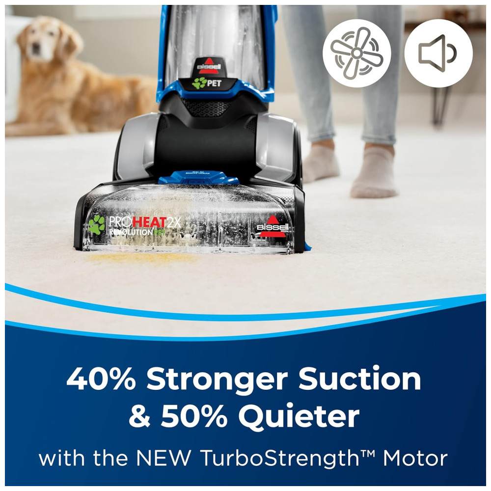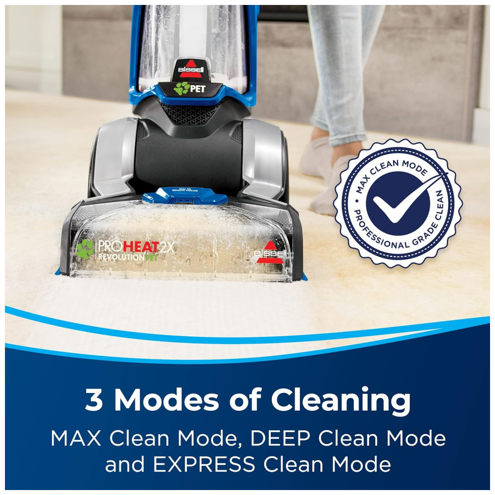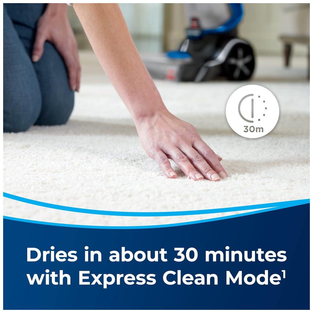 Este produto apresenta uma tecnologia de motor de turboforça que oferece 40% a mais de potência de sucção com eficiência energética e 50% de redução de ruído para uma limpeza silenciosa. O modo máximo de limpeza remove sujeira incrustada, manchas e alérgenos, enquanto o modo de limpeza expressa deixa seus tapetes secos em cerca de 30 minutos. A tecnologia de ondas de calor ajuda a manter a temperatura da água durante todo o processo de limpeza. Além disso, possui escovas duplas DirtLifter com 12 fileiras de cerdas de limpeza para remover sujeira incrustada.
