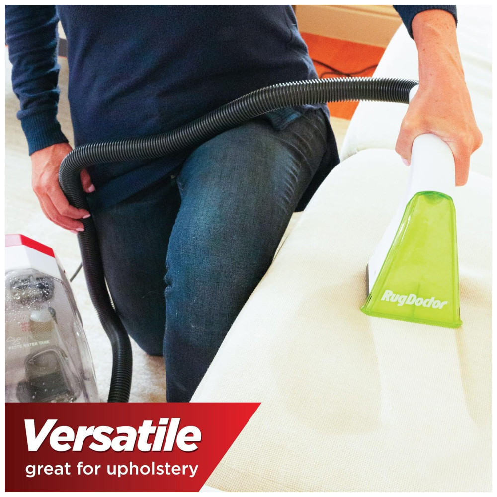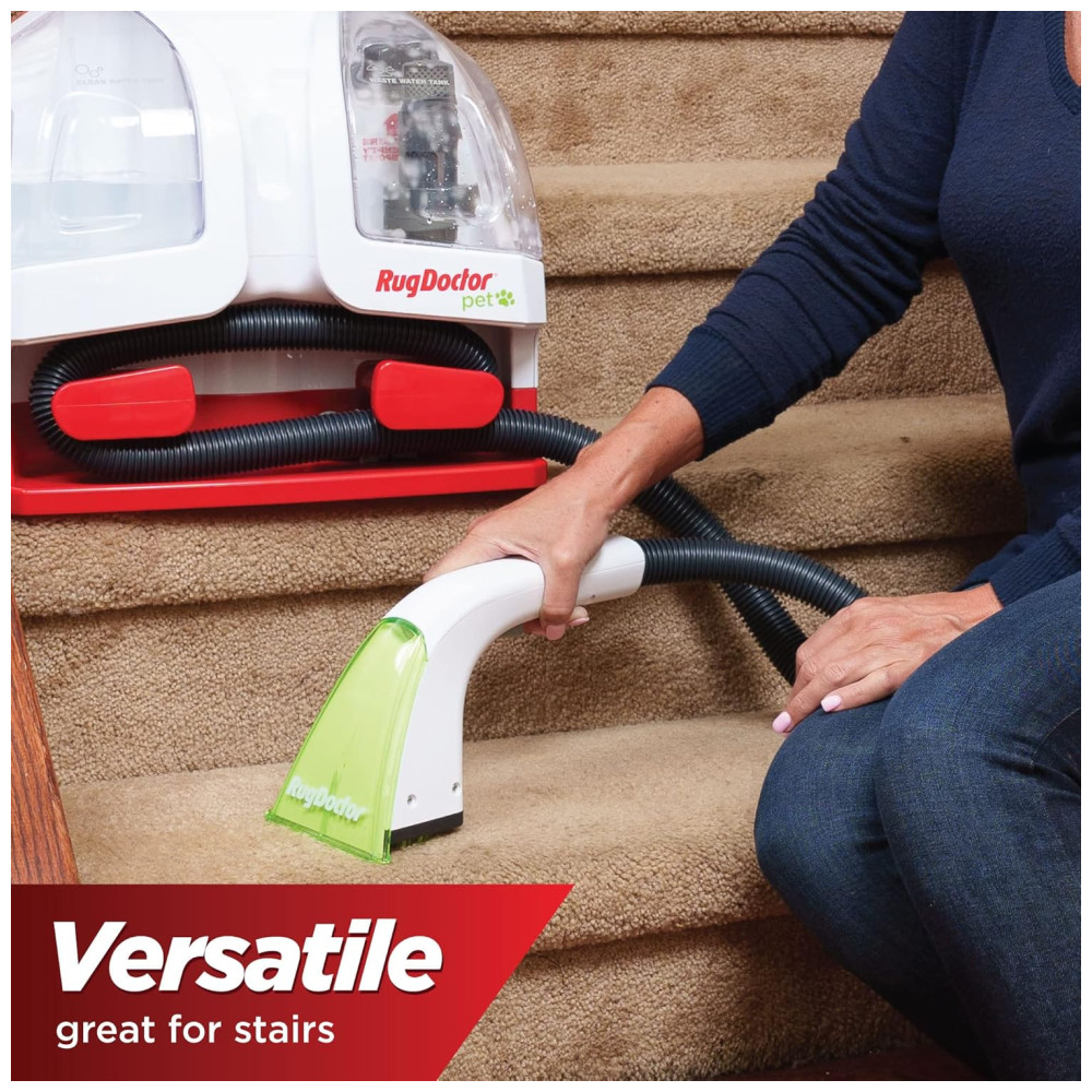 O limpador de manchas portátil Rug Doctor Pet é ideal para quem busca resultados de limpeza profissionais em superfícies macias, como carpetes, tapetes, escadas, estofados, colchões, camas para animais de estimação, interiores de automóveis e muito mais. Com potência de sucção 2X em comparação com os principais limpadores de carpetes portáteis comparáveis, este produto elimina sujeira, manchas, manchas e odores incrustados da bagunça do dia a dia e de animais de estimação. A ferramenta portátil de dupla ação para animais de estimação retém pelos soltos de animais de estimação e torna a limpeza fácil e rápida. Além disso, a máquina apresenta um design portátil, leve e compacto, com rodas adequadas para carpetes e uma alça retrátil, facilitando a manobra onde quer que você precise. Para obter melhores resultados, use com a solução de limpeza de manchas de odor para animais de estimação Rug Doctor Pure Power.