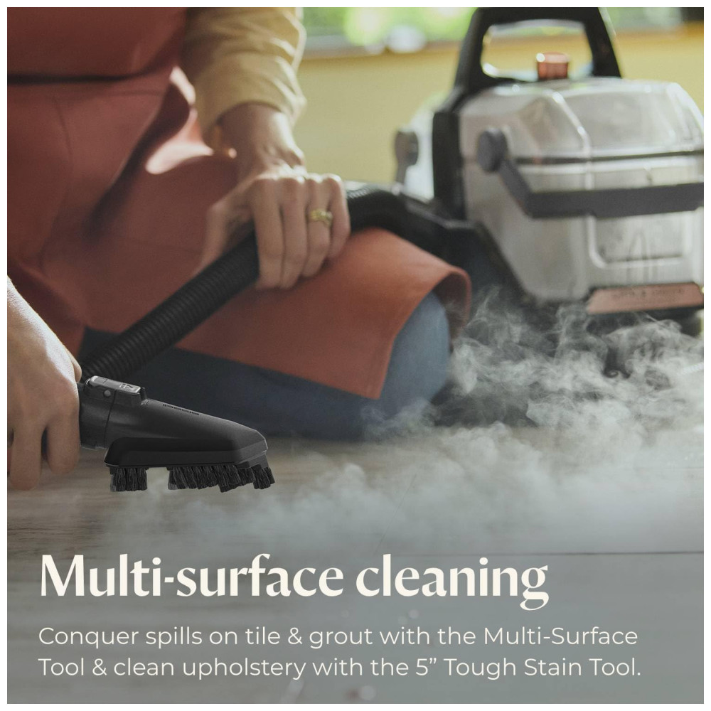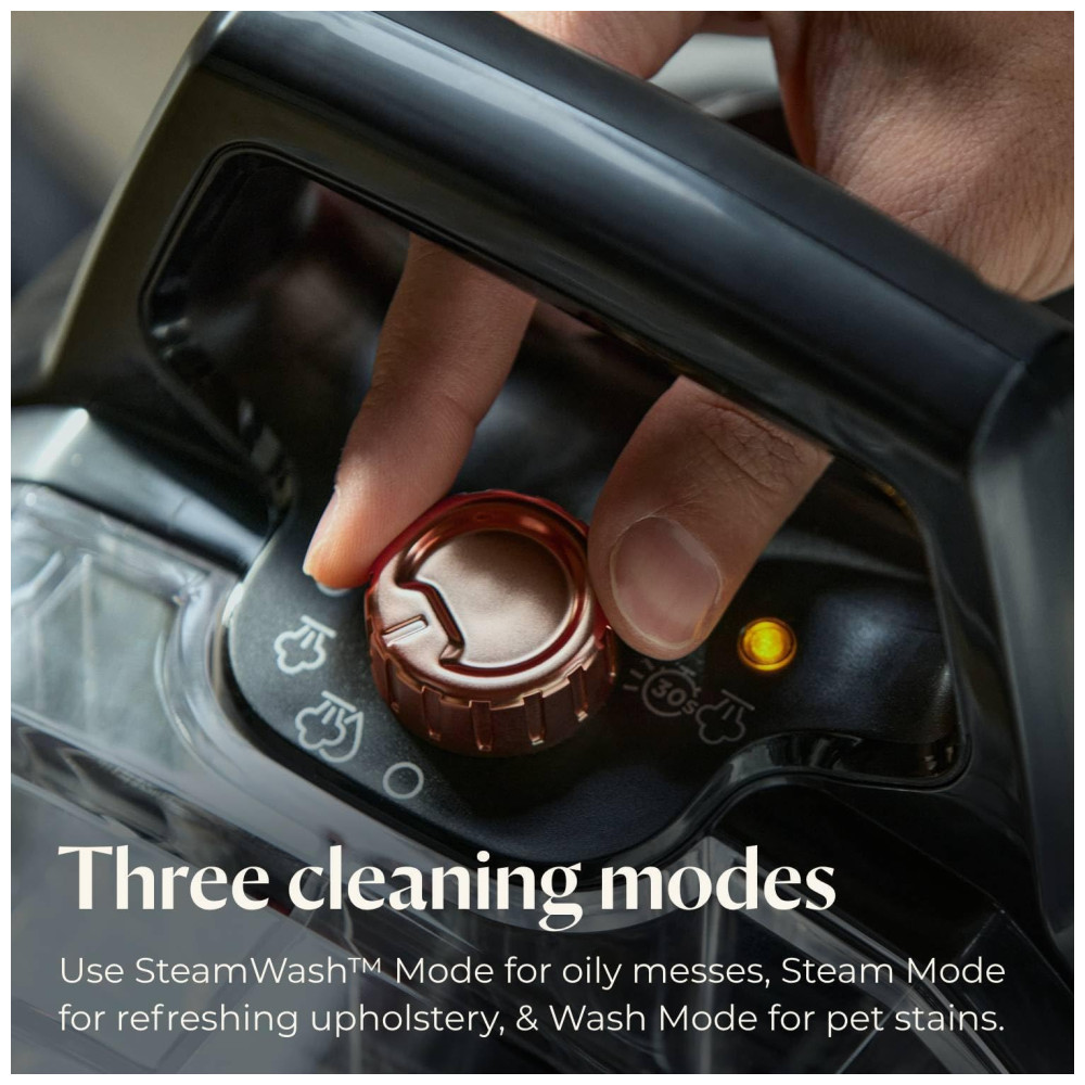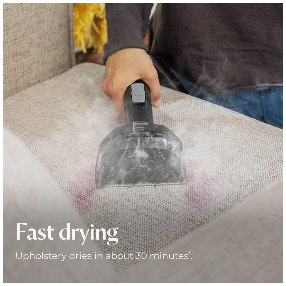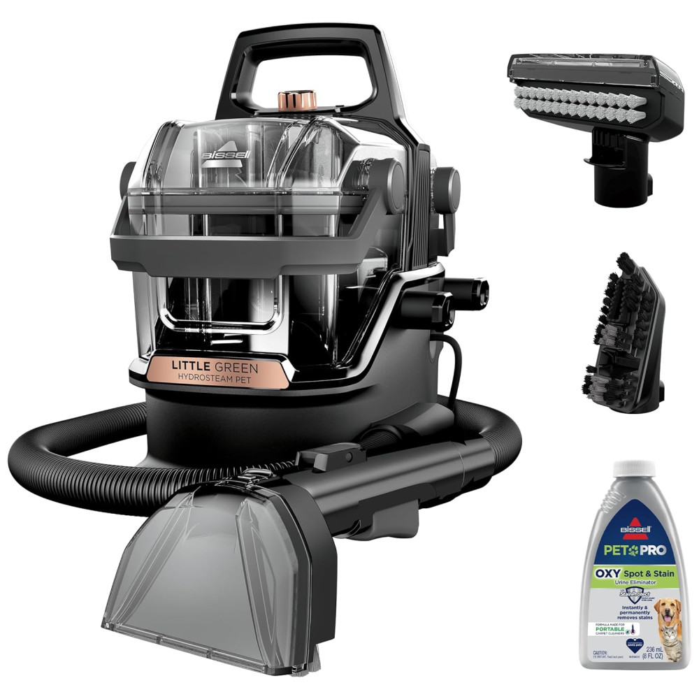 O limpador profundo portátil BISSELL Little Green HydroSteam Pet utiliza a tecnologia HydroSteam para eliminar manchas difíceis e oleosas em até 50 por cento melhor. Com três modos de limpeza diferentes, é possível limpar diversos tipos de sujeira e remover manchas de animais de estimação com a ajuda do eliminador de urina para manchas BISSELL PET PRO OXY com fórmula StainProtect. O produto é versátil e pode ser utilizado em superfícies como carpetes, estofados, interiores de automóveis, azulejos e até tênis. A secagem é rápida, levando cerca de 25 minutos para o estofamento ficar seco. Além disso, a máquina vem com cinco ferramentas para manchas resistentes, ferramenta MultiSurface e eliminador de urina para manchas e manchas BISSELL PET PRO OXY com fórmula StainProtect.