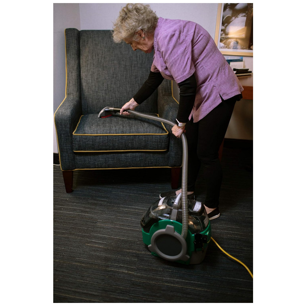 O Limpador de Manchas Comercial da Bissell é uma ótima opção para quem busca um produto portátil e poderoso. Com capacidade do tanque de 2,8 litros, ele alcança espaços de difícil acesso que outros extratores e shampooers não conseguem. Seu cabo de alimentação longo de 20 metros permite que você limpe áreas amplas sem precisar reabastecer o tanque de água. Além disso, é ideal para limpar escadas, tapetes de área, estofados e interiores de automóveis. Utilizando sucção a vácuo, ação de escovação e solução de limpeza, o pequeno limpador de manchas comercial verde Pro remove sujeira e manchas com eficiência. O número de modelo do produto é BGSS1481.