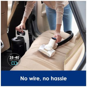 Extratora e Higiniezadora de Carpetes e Estofados Portátil e Sem Fio com Tela LED e Silencioso CARPET ONE Spot Preto e Branco
