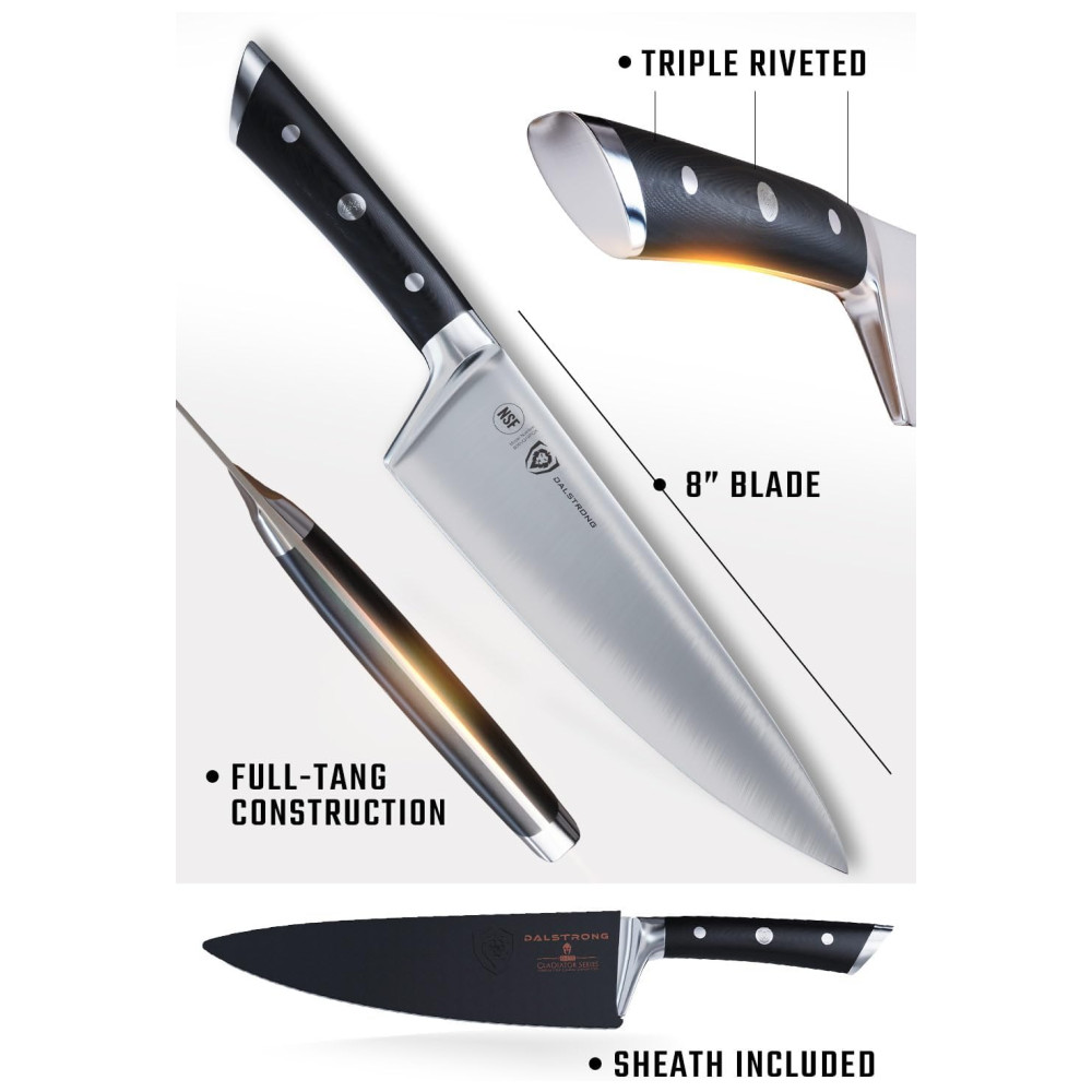 Faca de Cozinha Chef DALSTRONG Série de Gladiador 8 Polegadas Aço Inoxidável Preto