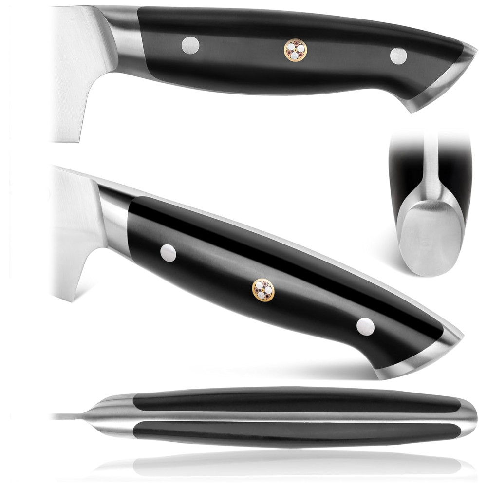 Facas com patente pendente de design que se concentra em ergonomia, cabo com rebite em mosaico exclusivo