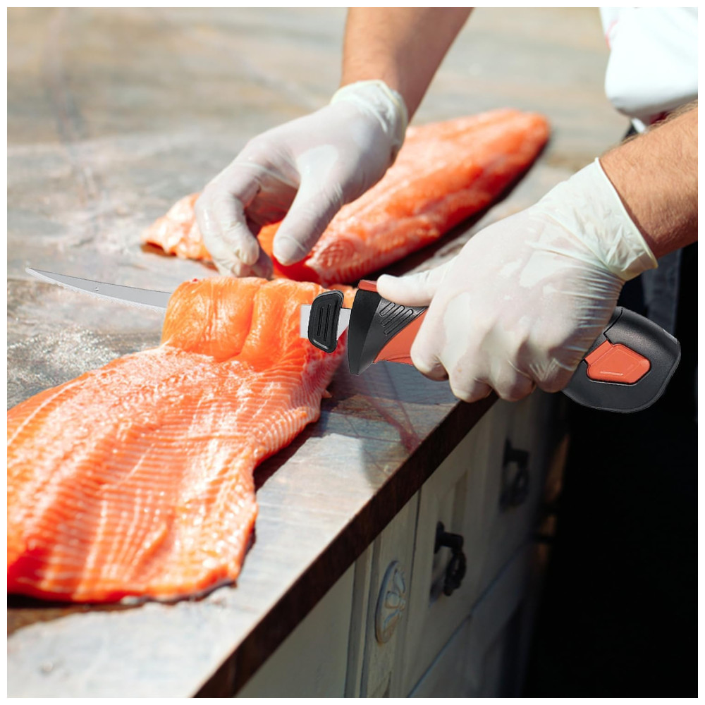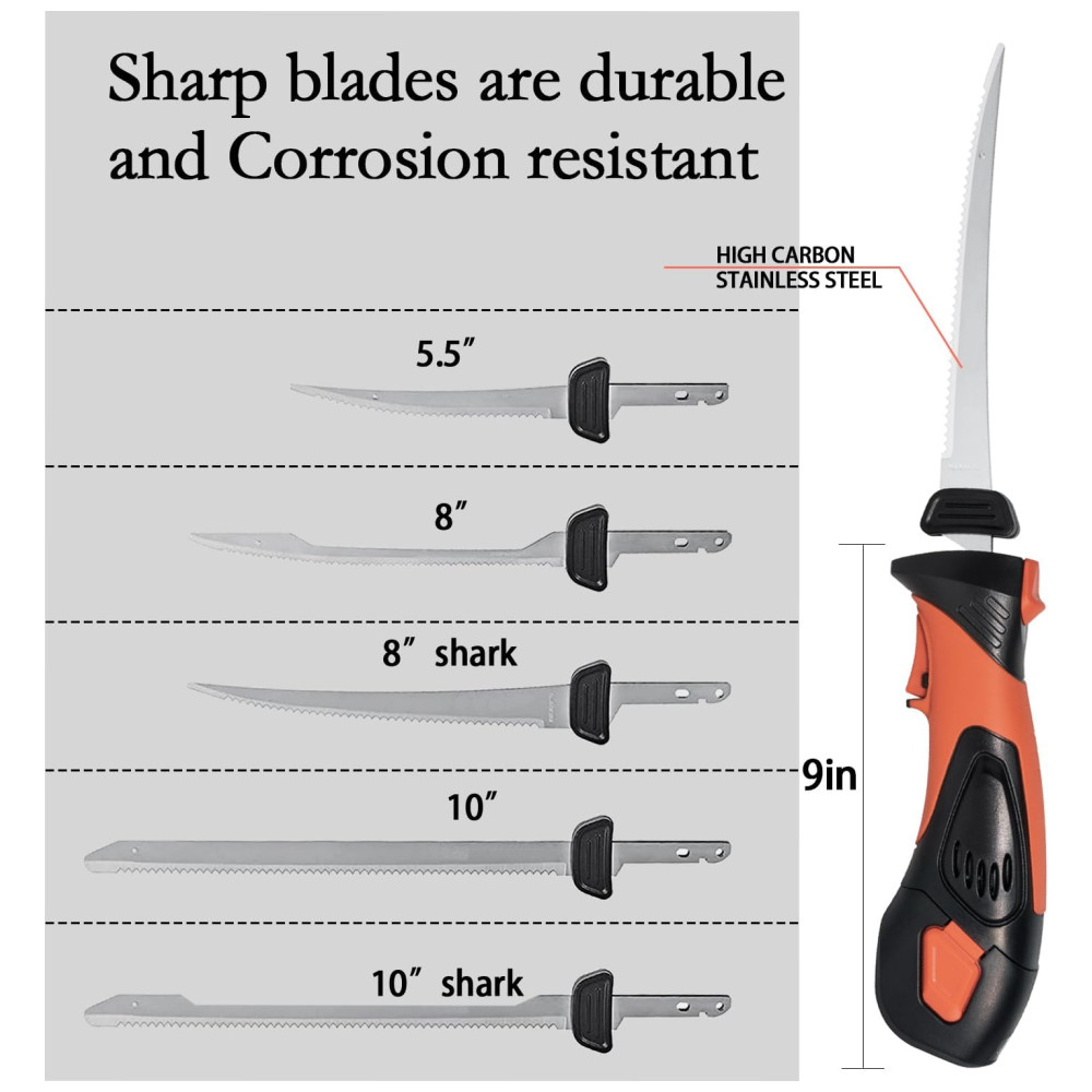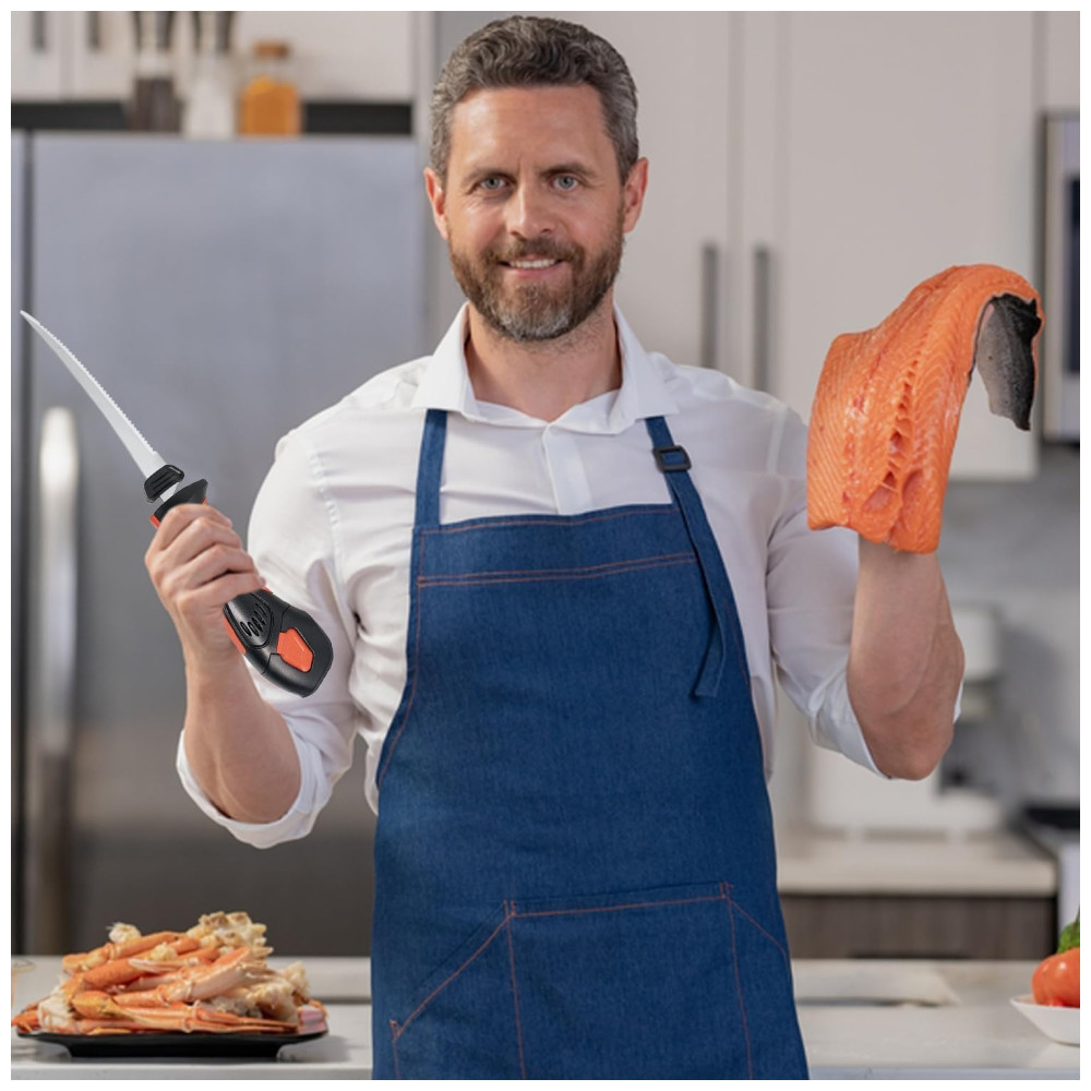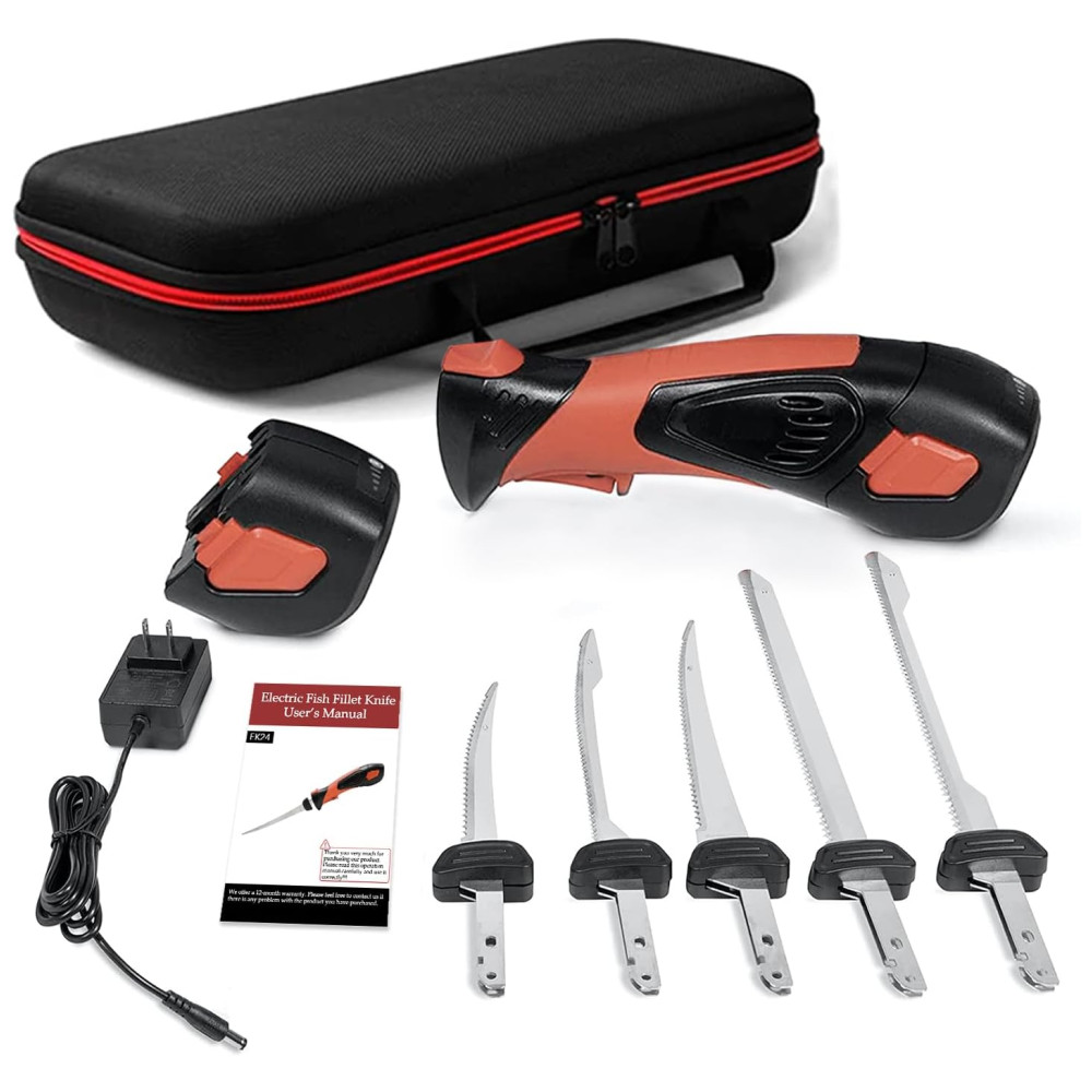 Eleve sua experiência de pesca com o Conjunto de Facão Elétrico Sem Fio da Pratuor. Este kit de qualidade profissional inclui cinco lâminas de aço inoxidável ultra afiadas e substituíveis, duas baterias recarregáveis e uma prática bolsa de armazenamento, garantindo que você tenha tudo que precisa para filetar sem complicações! Mantenha a ação com duas baterias recarregáveis substituíveis. Cada bateria oferece até 40 minutos de autonomia, permitindo que você processe de 15 a 20 peixes com peso entre 4,5 a 11,3 kg. As lâminas revestidas de Titânio oferecem versatilidade, com cinco opções de tamanhos para diferentes tipos de peixe, como crappie, badejo e atum. A empunhadura ergonômica com aderência antiderrapante e trava de segurança proporciona controle aprimorado e operação segura durante o filetamento. Além disso, o conjunto inclui uma bolsa de transporte de alta qualidade para facilitar o transporte de todos os acessórios.