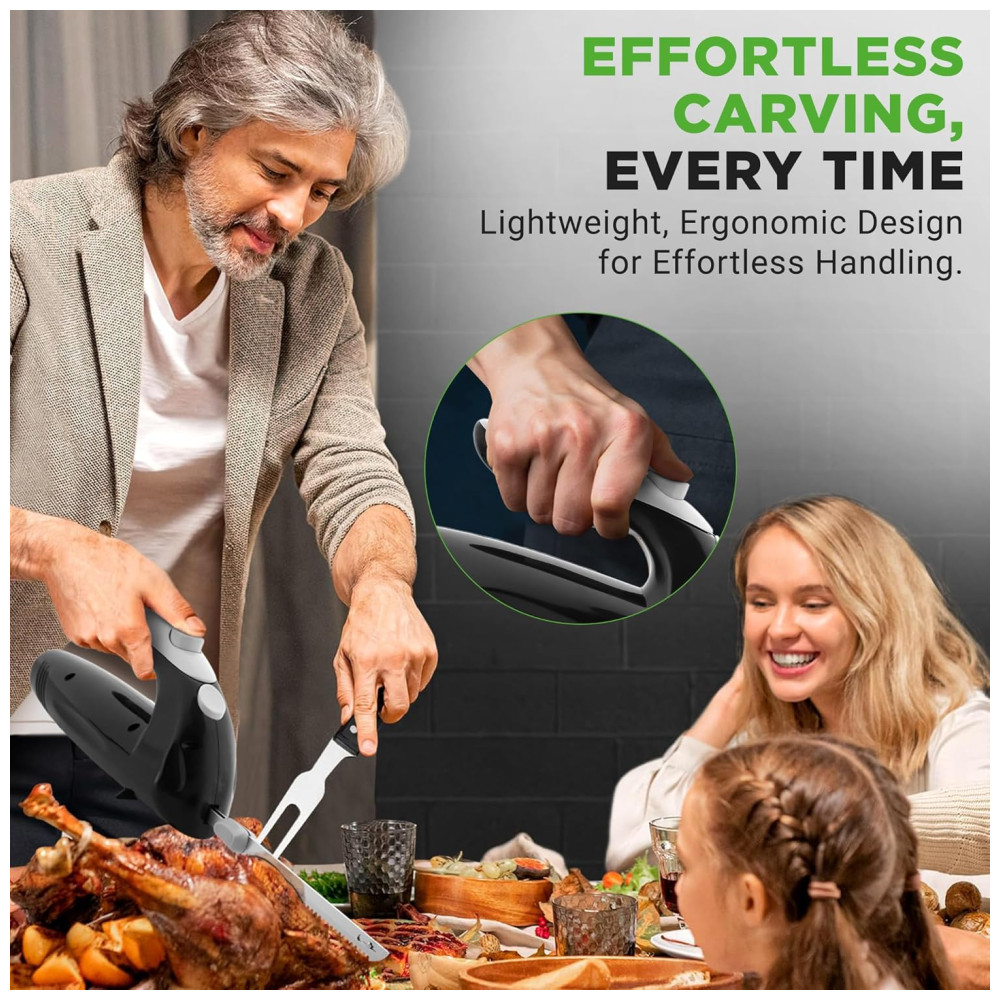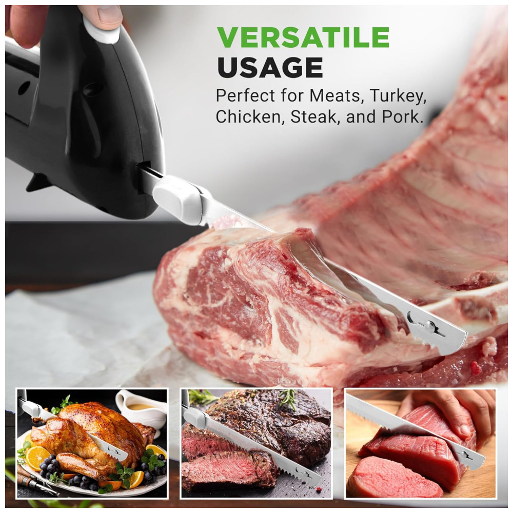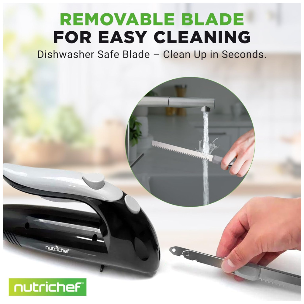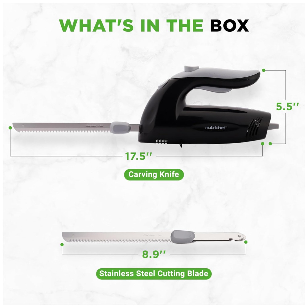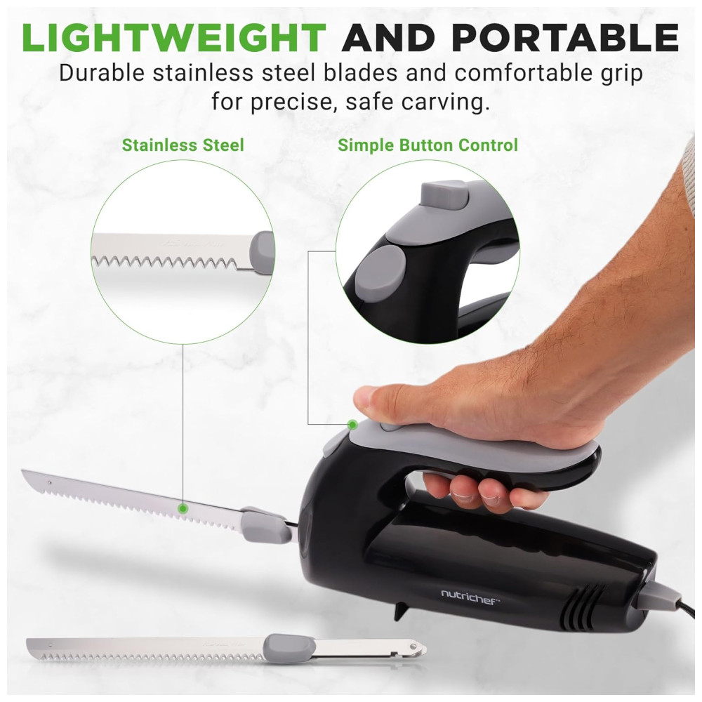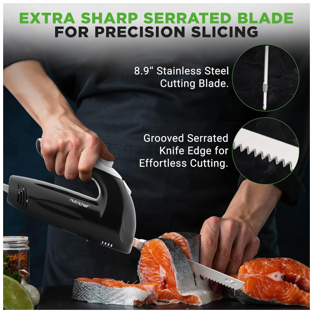 Faca Elétrica NutriChef Premium – Lâminas Serrilhadas Design Ergonômico Fácil de Limpar – Ideal para Carnes Queijos – Preto PKELKN8
