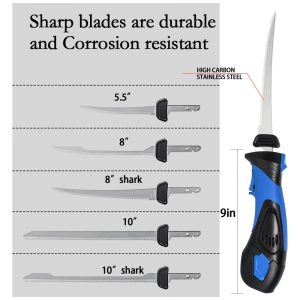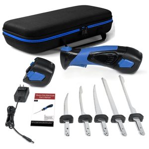 Eleve sua experiência de pesca com o Conjunto de Facão Elétrico sem Fio da Pratuor. Este kit de alta qualidade inclui cinco lâminas de aço inoxidável substituíveis ultra afiadas, duas baterias recarregáveis e uma prática bolsa de armazenamento, garantindo que você tenha tudo o que precisa para filetar peixes de forma perfeita! Mantenha a ação com duas baterias recarregáveis substituíveis. Cada bateria oferece até 40 minutos de uso, permitindo que você processe de 15 a 20 peixes. As lâminas versáteis revestidas com TiNitride permitem escolher entre cinco opções de alto desempenho adequadas para diferentes tamanhos e tipos de peixe. Com esse conjunto variado, você pode lidar com qualquer captura com confiança! Tenha controle aprimorado com o cabo ergonômico antiderrapante, que possui um protetor de gatilho para segurança adicional. Ative o facão com tranquilidade usando o bloqueio de segurança, garantindo uma operação segura durante o filetamento. O conjunto de facão elétrico vem com uma bolsa de transporte de alta qualidade, facilitando o transporte de todos os seus acessórios.