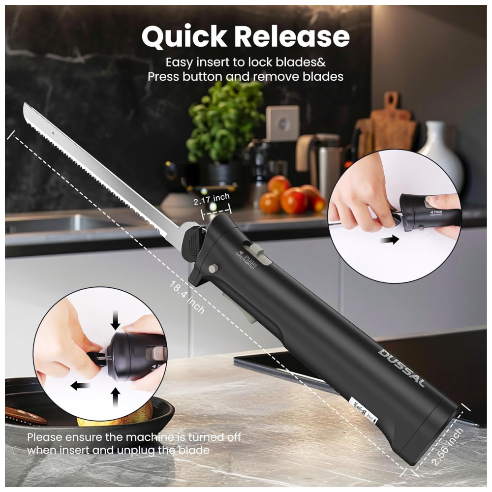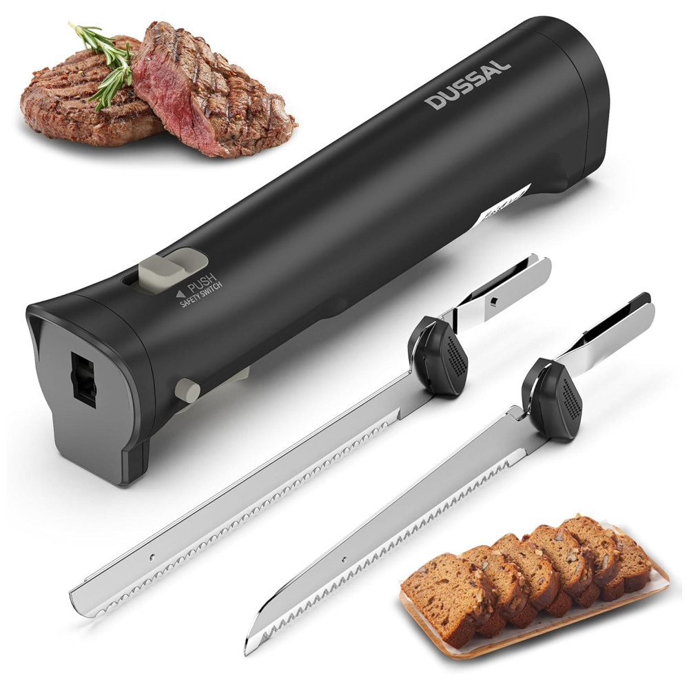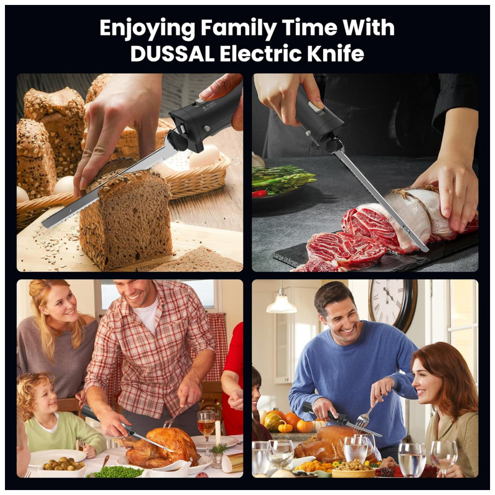 Faca Elétrica Sem Fio D DUSSAL para Pães com 4 Lâminas de Aço Inox Trava de Segurança Botões de Liberação Liga/Desliga – 30cm