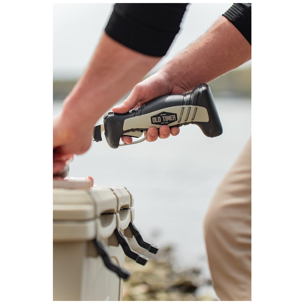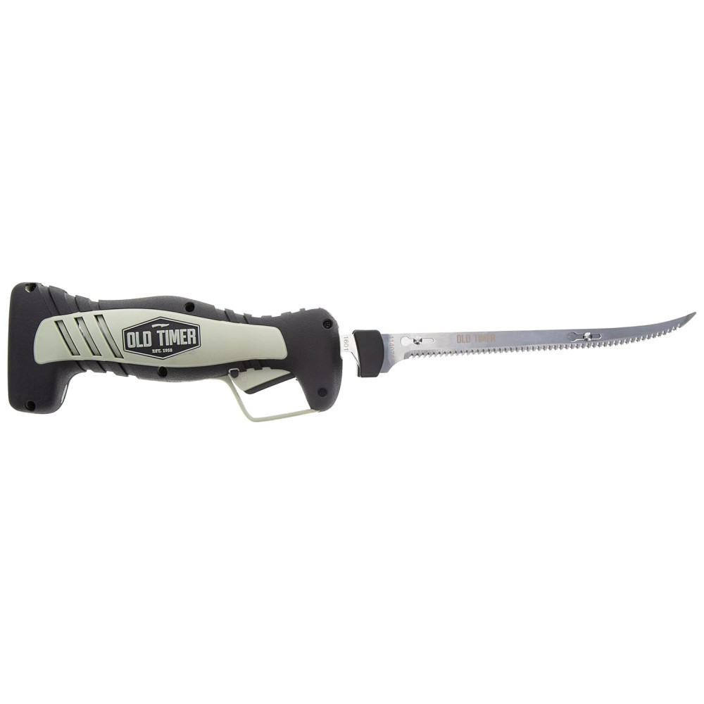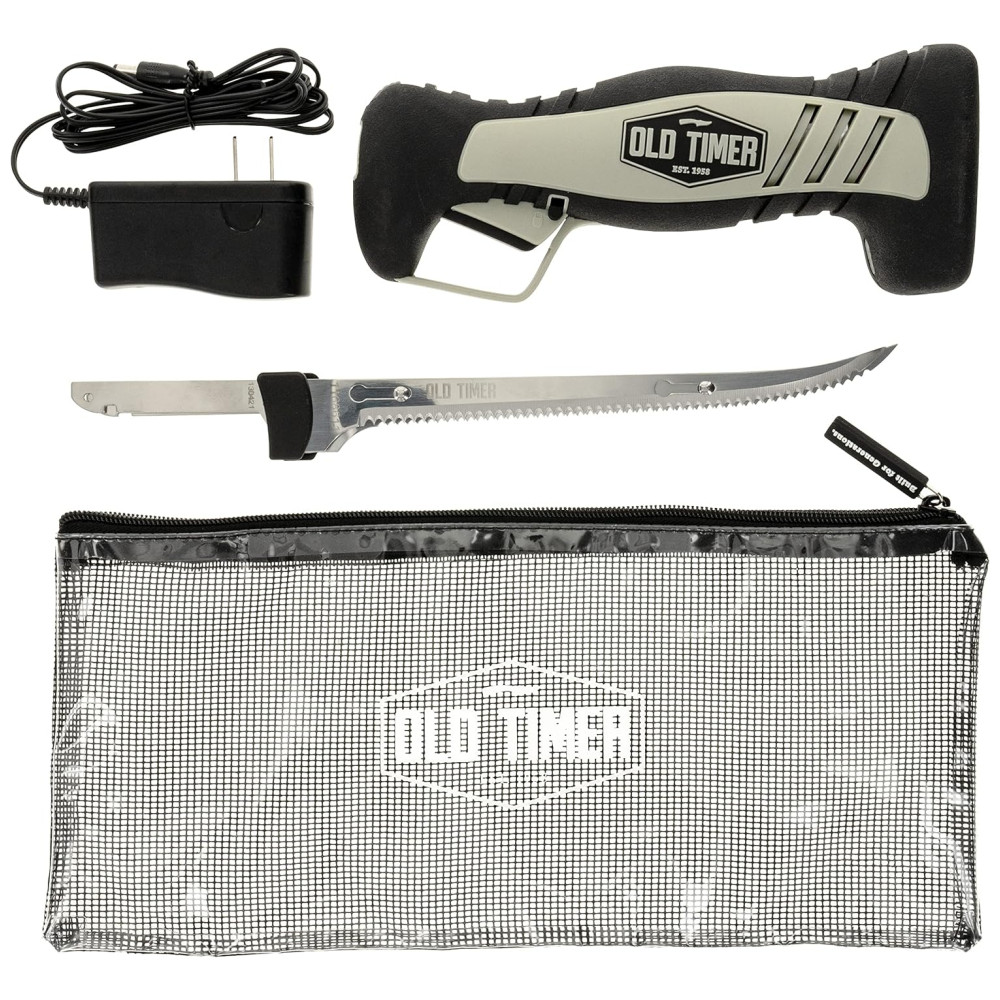 A Faca Elétrica Sem Fio Old Timer foi projetada para transformar todo pescador em um profissional na hora de filetar. Com cabo ergonômico, bateria embutida de 7,2V e lâminas de ponta curva destacáveis de aço inoxidável, esta faca tornará o trabalho com seu peixe muito mais fácil. Além do cabo, bateria potente e design de lâmina destacável, incluímos um sistema de ventilação para máxima eficiência, indicador de bateria LED, trava de gatilho, protetor, cabo de carregamento e estojo para transporte. Esta é a última faca elétrica de filetar que você precisará comprar.