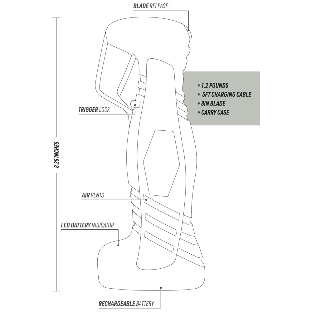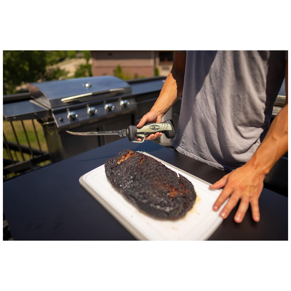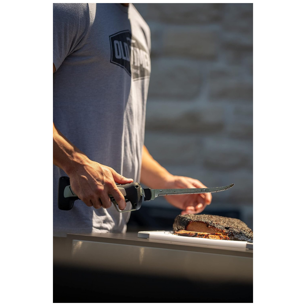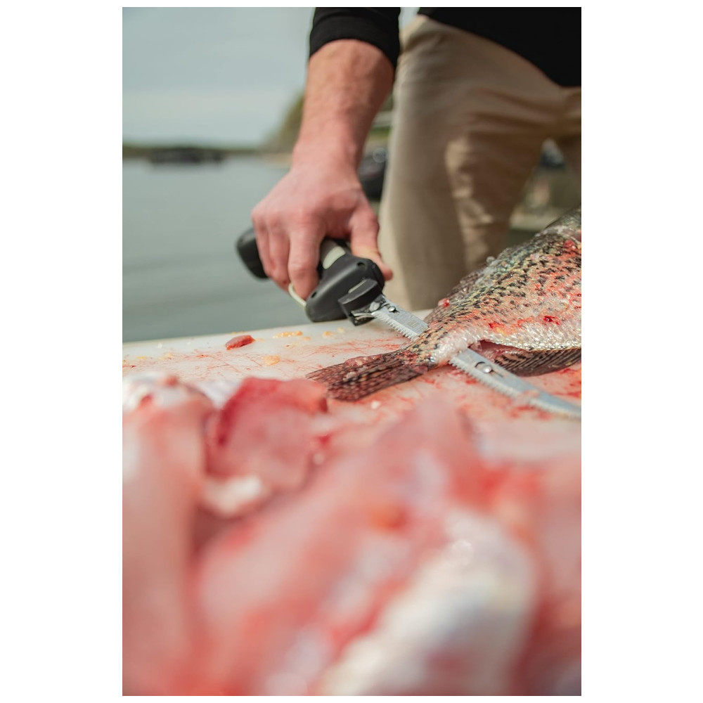 A Faca Elétrica Sem Fio Old Timer foi projetada para transformar todo pescador em um profissional na hora de filetar. Com cabo ergonômico, bateria embutida de 7,2V e lâminas de ponta curva destacáveis de aço inoxidável, esta faca tornará o trabalho com seu peixe muito mais fácil. Além do cabo, bateria potente e design de lâmina destacável, incluímos um sistema de ventilação para máxima eficiência, indicador de bateria LED, trava de gatilho, protetor, cabo de carregamento e estojo para transporte. Esta é a última faca elétrica de filetar que você precisará comprar.