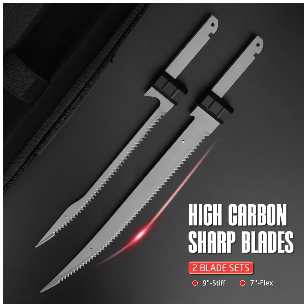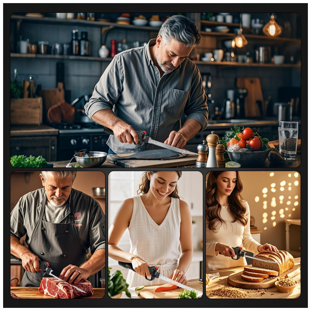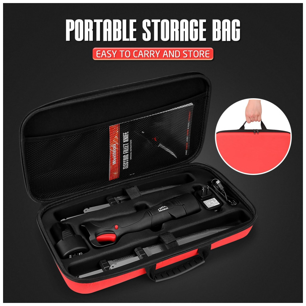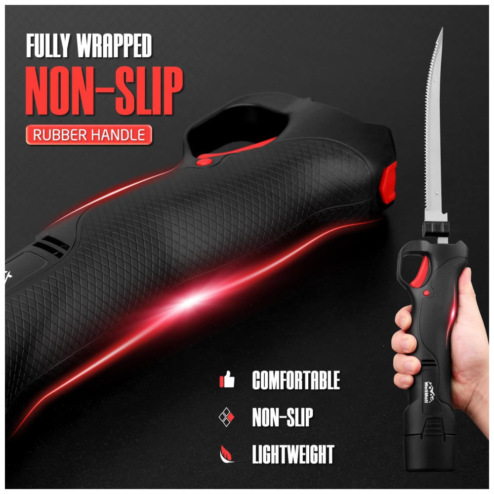 Faca Elétrica Sem Fio para Filé de Peixe com 2 Lâminas de Aço Inoxidável Cabo Antiderrapante e Travamento de SegurançaWellMall