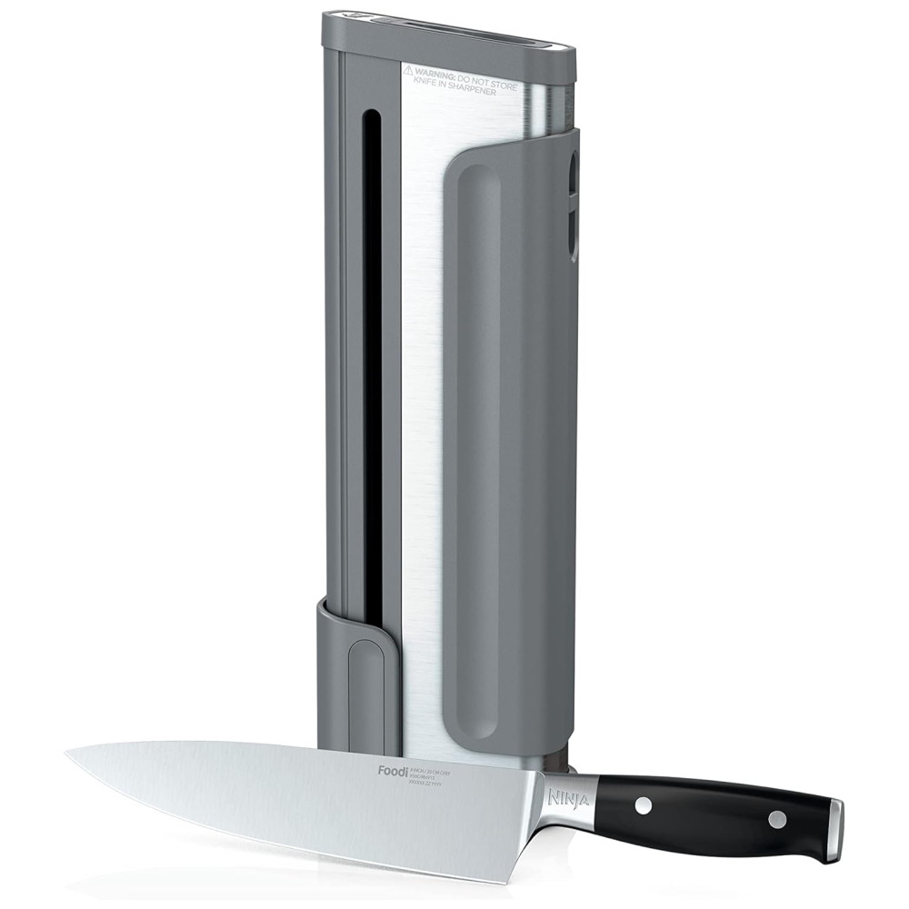 Descubra o Conjunto de Faca e Afiador de Facas Ninja K32502 Foodi NeverDull System, uma escolha premium para sua cozinha. As lâminas de qualidade superior são forjadas em aço inoxidável alemão, garantindo resistência à ferrugem e durabilidade para todas as suas tarefas culinárias.