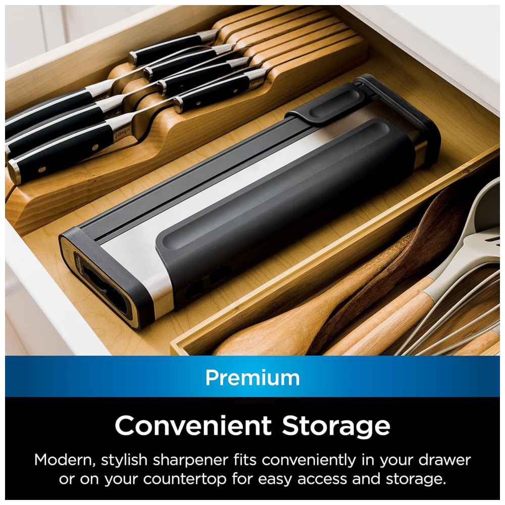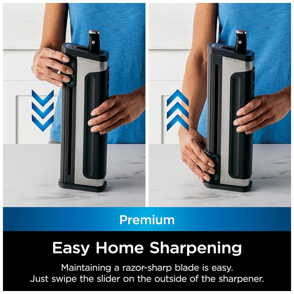 Para manter a qualidade, recomendamos lavar à mão. Eleve sua experiência culinária com o Conjunto de Faca e Afiador de Facas Ninja K32502 Foodi NeverDull System.