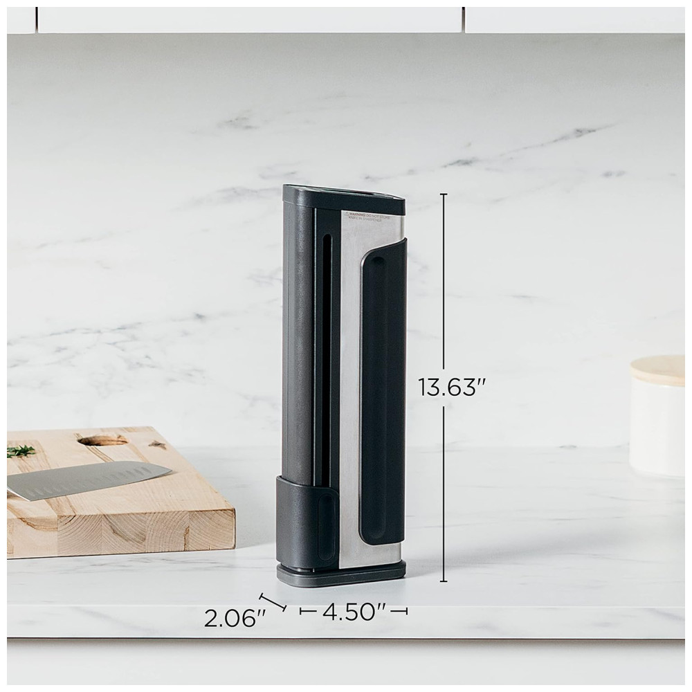 O conjunto de 2 peças inclui uma faca de chef de 20,32 cm e um afiador com tecnologia NeverDull, garantindo que suas ferramentas estejam sempre prontas para uso.
