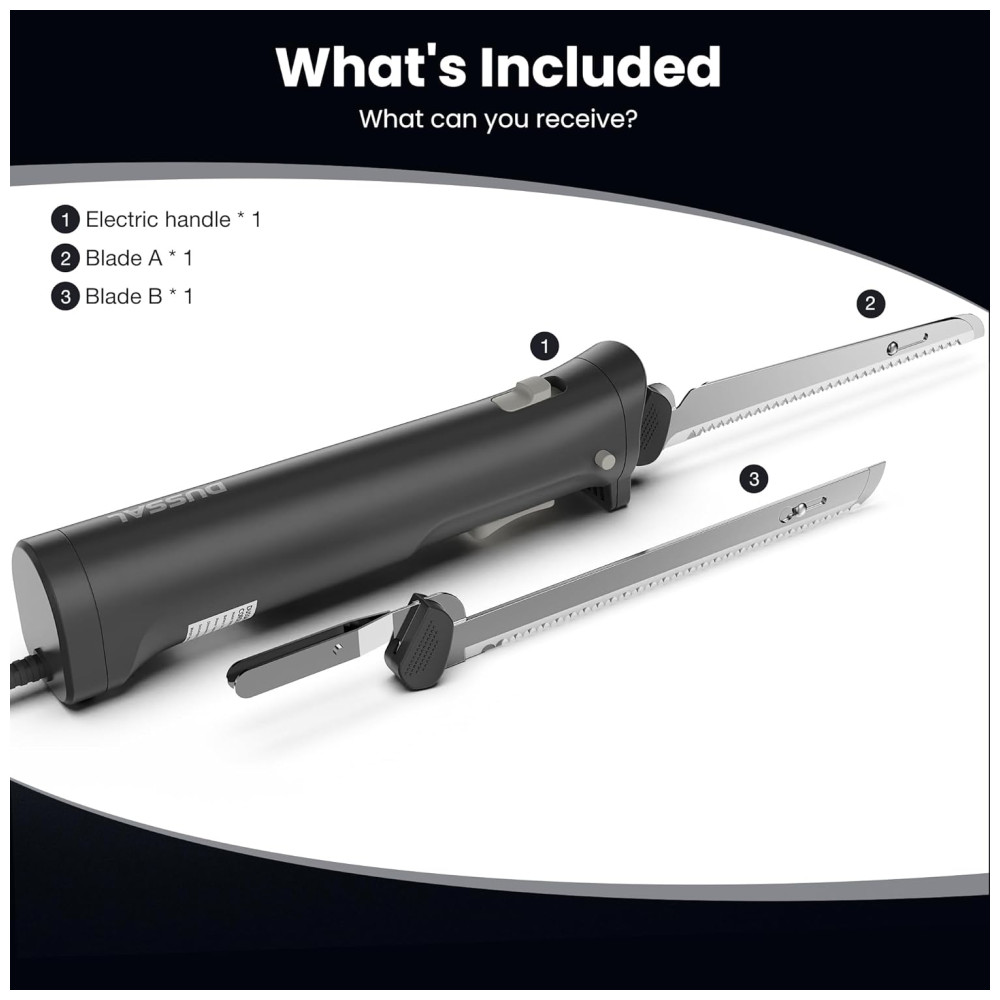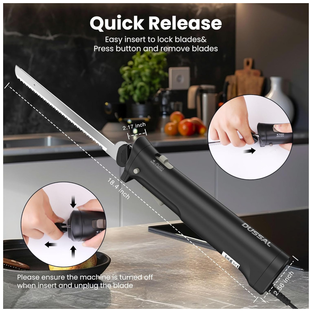Facas Elétricas D DUSSAL: Cortes Precisos com Segurança Lâminas Inox Botão de Segurança