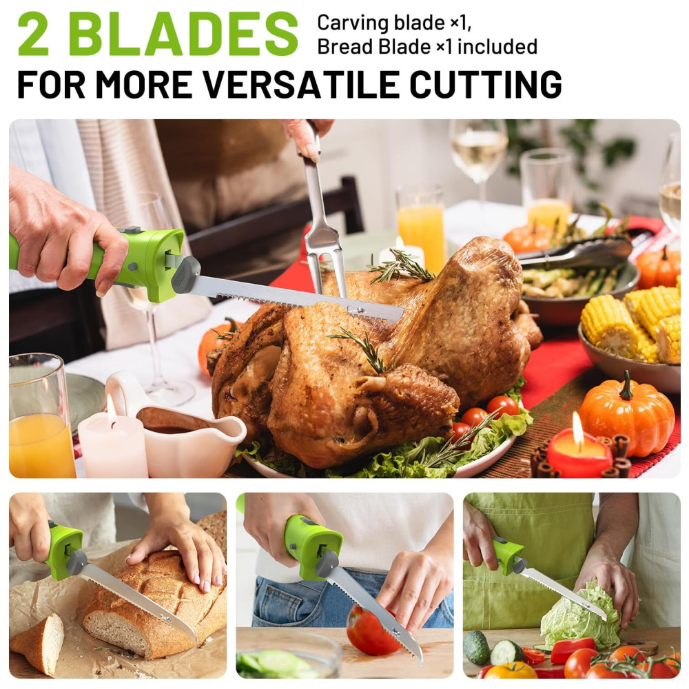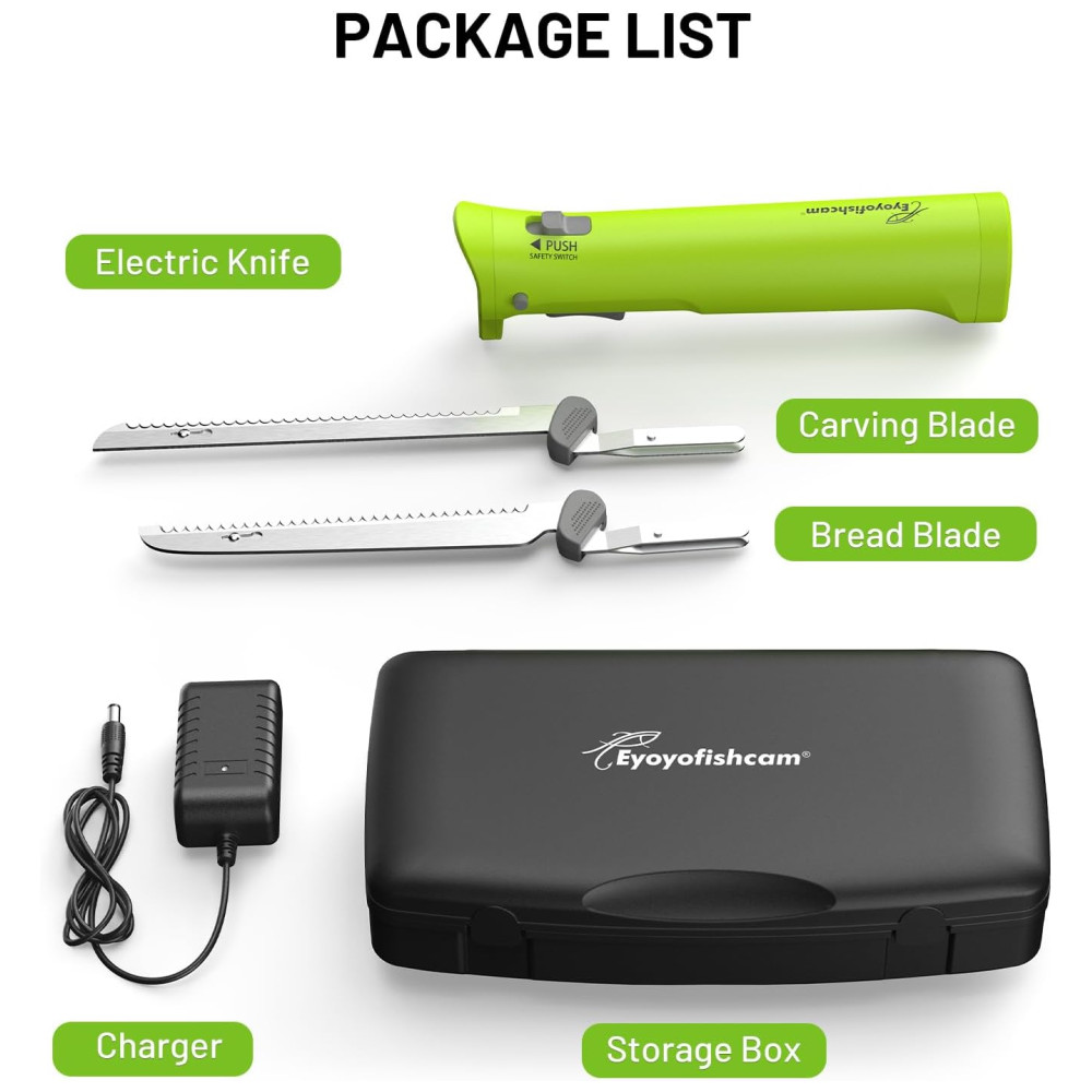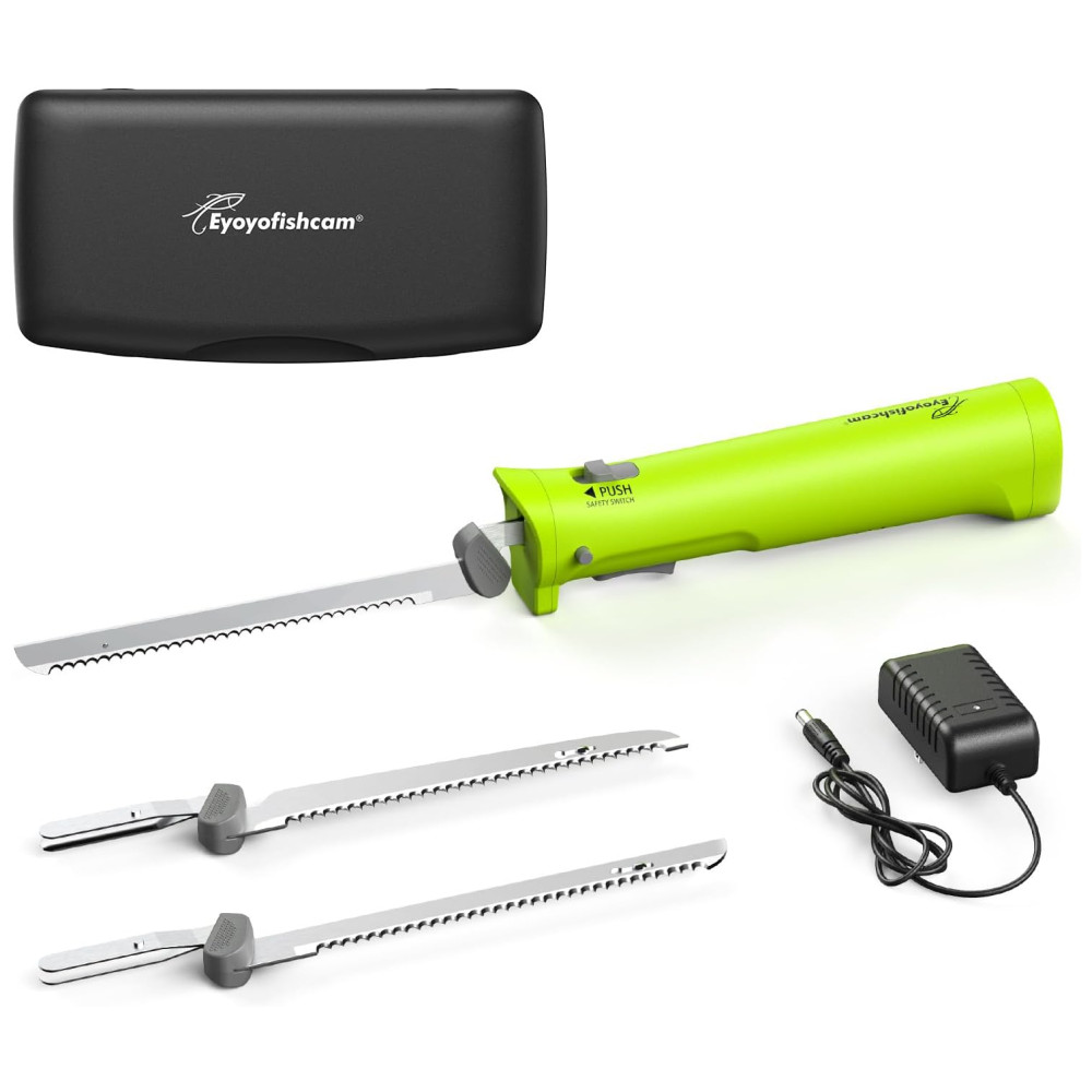 Facilitando o Corte na Cozinha: Faca Elétrica Sem Fio com Bateria Recarregável e 2 Lâminas de Aço Inoxidável Serrilhadas RecíprocasEyoyofishcam