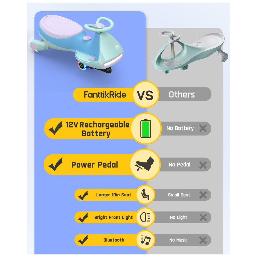 FanttikRide 12V N7 Pro: Carro Elétrico com Pedal Bateria Recarregável Bluetooth e Luzes Piscantes