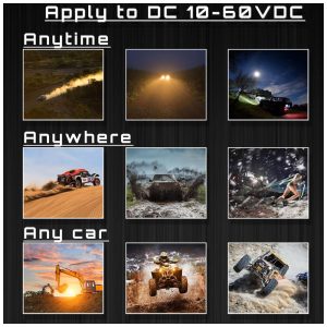 Funcionamento em todos os climas A caixa de alumínio garante eliminação rápida do calor. Lente de PC de alta transparência e cabo de sílica gel funcionam perfeitamente de 40 a 80 Celsius em automóveis, serviços pesados, barcos, ATV, SUVs, etc.